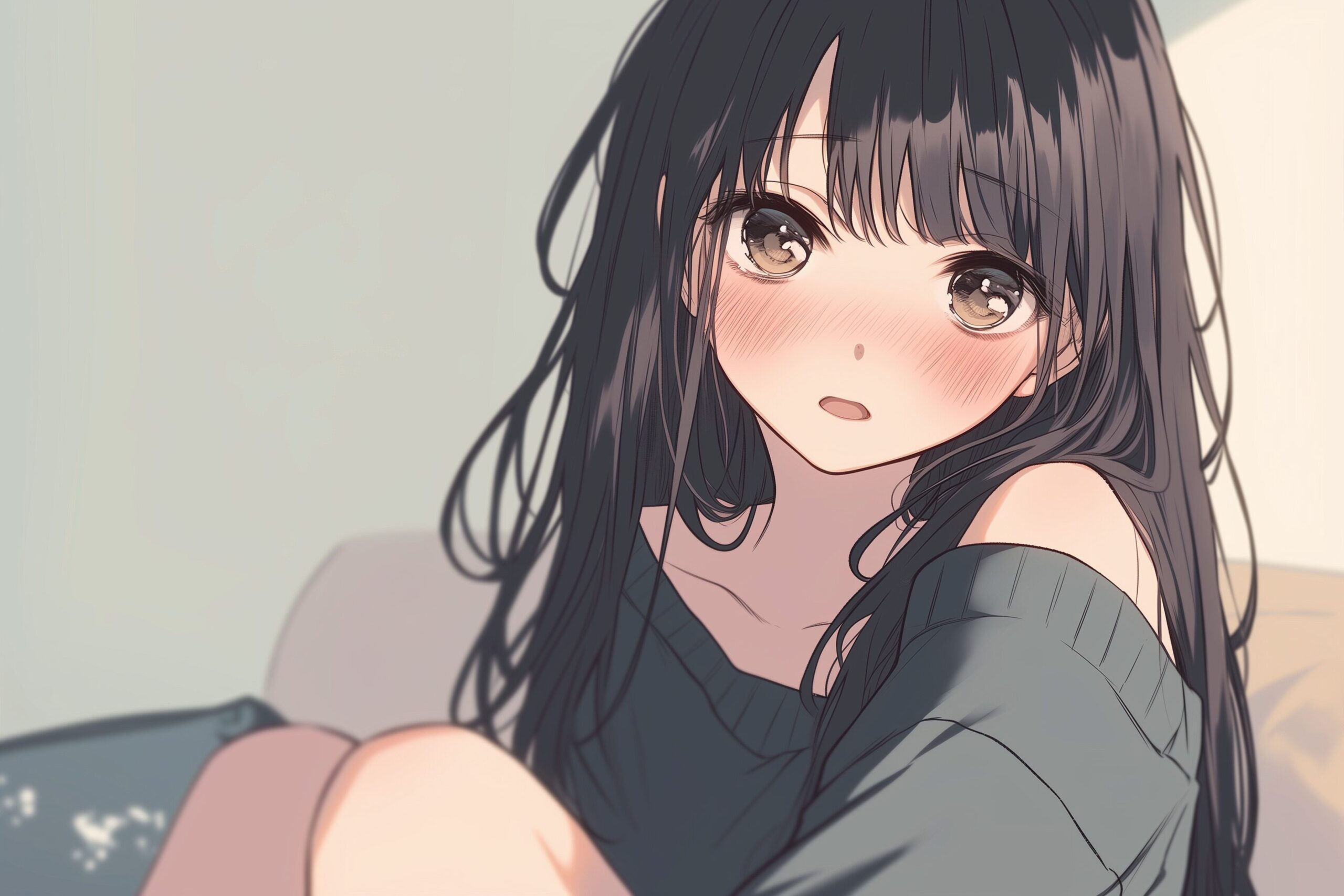 検索タグ:イラスト、ファッション、キャラクター、女性、女、女の子、女子、女の人、アニメ、漫画、マンガ、美人、美女、若い、かわいい、可愛い、カワイイ、人物、顔、美しい、綺麗、きれい、キレイ、アート、お洒落、挿絵、インスタ、Instagram、AI生成画像、fashion、コピースペース、黒髪、ロングヘア、部屋、室内、座る、怒る、拗ねる、やきもち、嫉妬