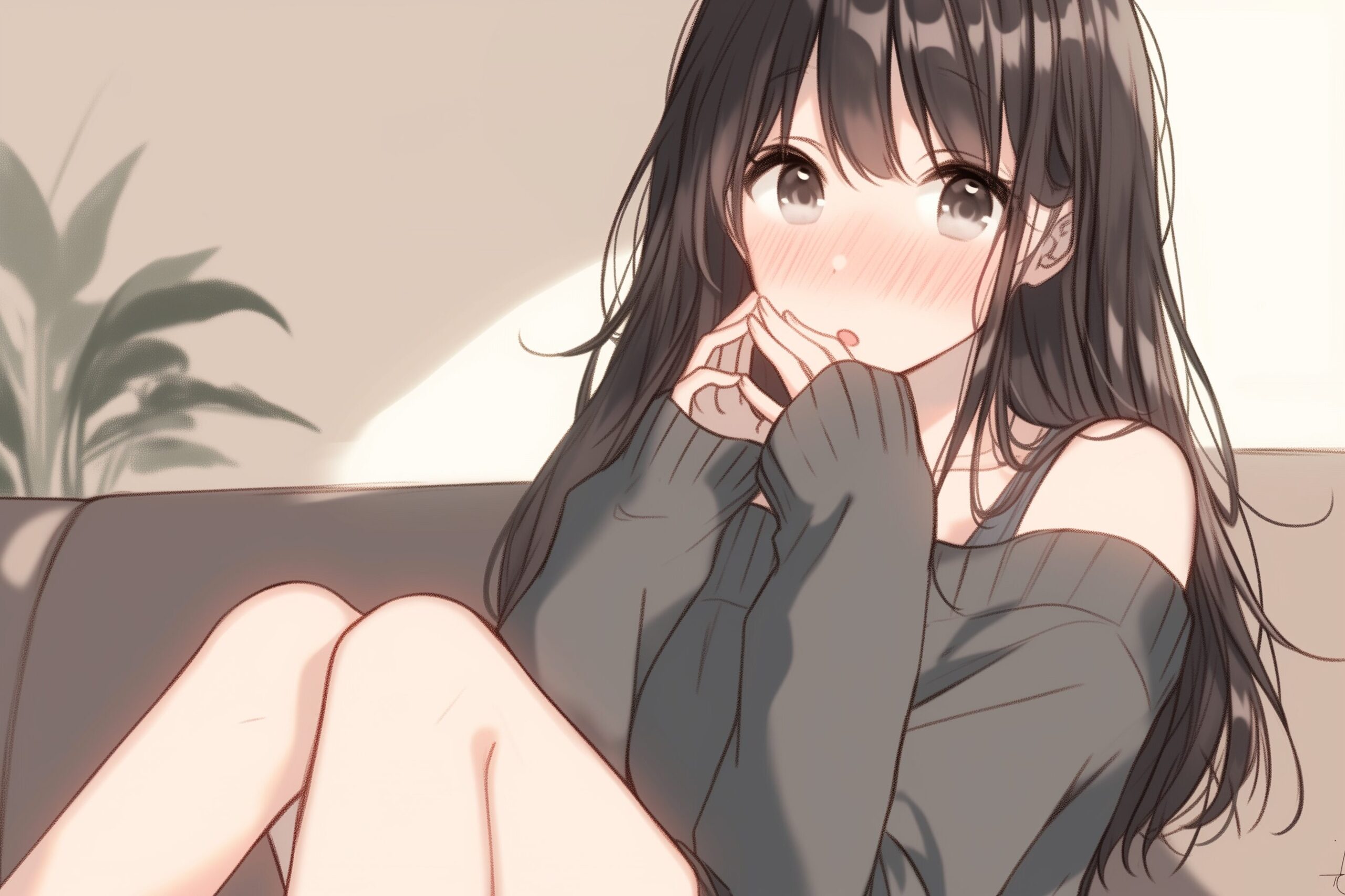 検索タグ:イラスト、ファッション、キャラクター、女性、女、女の子、女子、女の人、アニメ、漫画、マンガ、美人、美女、若い、かわいい、可愛い、カワイイ、人物、顔、美しい、綺麗、きれい、キレイ、アート、お洒落、挿絵、インスタ、Instagram、AI生成画像、fashion、コピースペース、黒髪、ロングヘア、部屋、室内、座る、拗ねる、やきもち、嫉妬