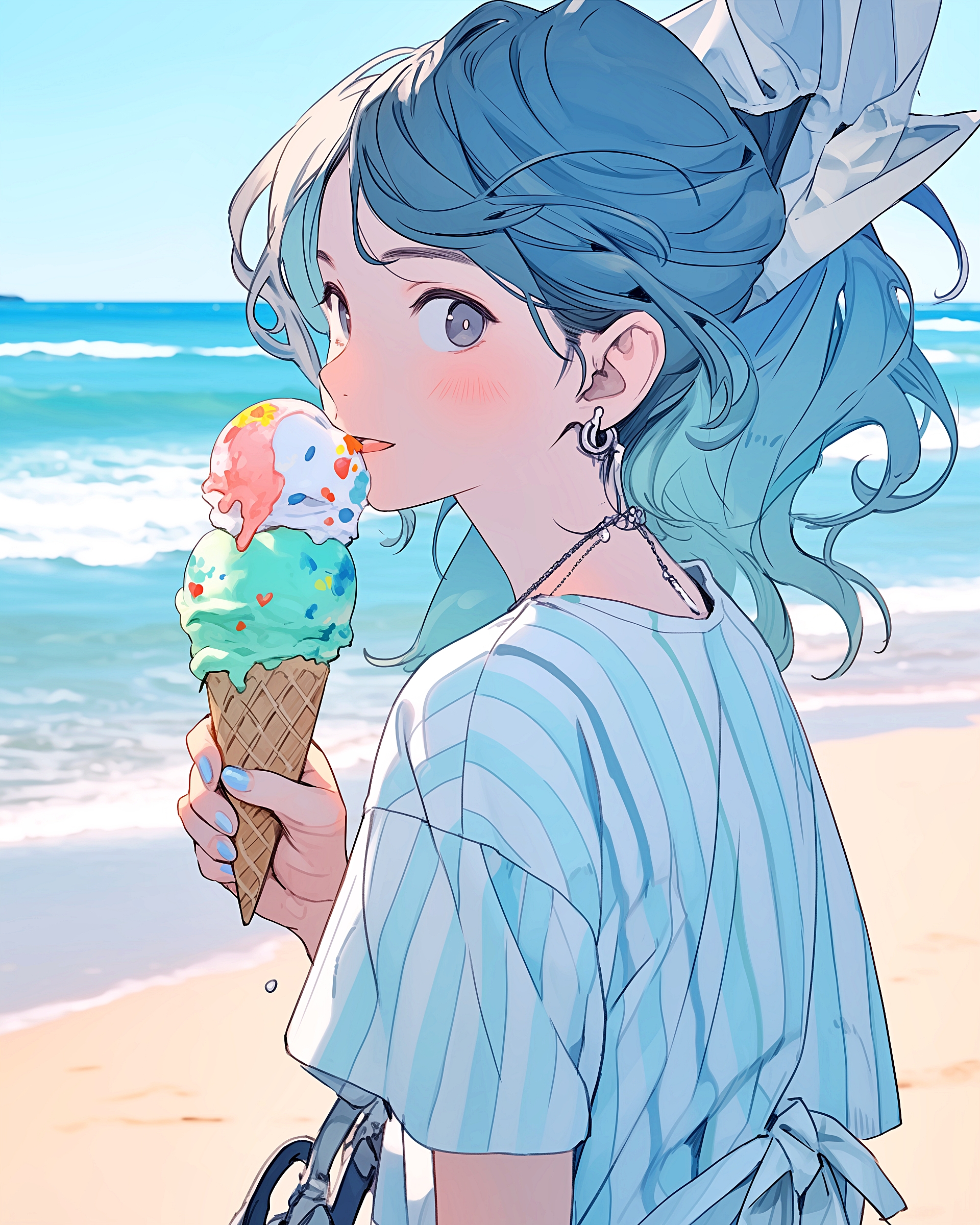 検索タグ:イラスト、ファッション、キャラクター、女性、女、女の子、女子、女の人、アニメ、漫画、マンガ、美人、美女、若い、かわいい、可愛い、カワイイ、人物、顔、美しい、綺麗、きれい、キレイ、アート、お洒落、女子高生、JK、挿絵、夏、春、パステルカラー、春服、インスタ、Instagram、summer、fashion、サムネイル、アイキャッチ、コピースペース、夏休み、ソフトクリーム、スイーツ、ビーチ、海