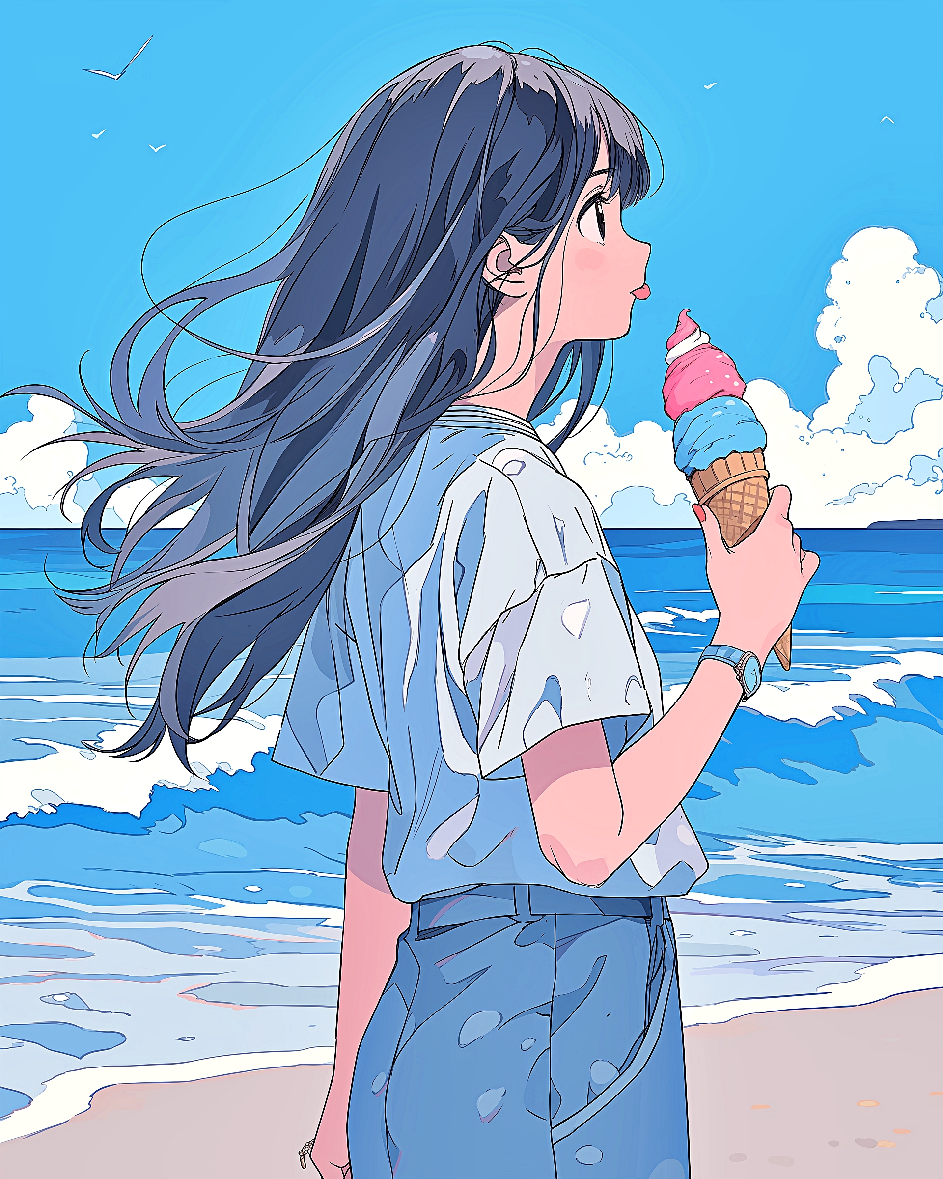 検索タグ:イラスト、ファッション、キャラクター、女性、女、女の子、女子、女の人、アニメ、漫画、マンガ、美人、美女、若い、かわいい、可愛い、カワイイ、人物、顔、美しい、綺麗、きれい、キレイ、アート、お洒落、女子高生、JK、挿絵、夏、春、パステルカラー、春服、インスタ、Instagram、summer、fashion、サムネイル、アイキャッチ、コピースペース、夏休み、ソフトクリーム、スイーツ、ビーチ、海