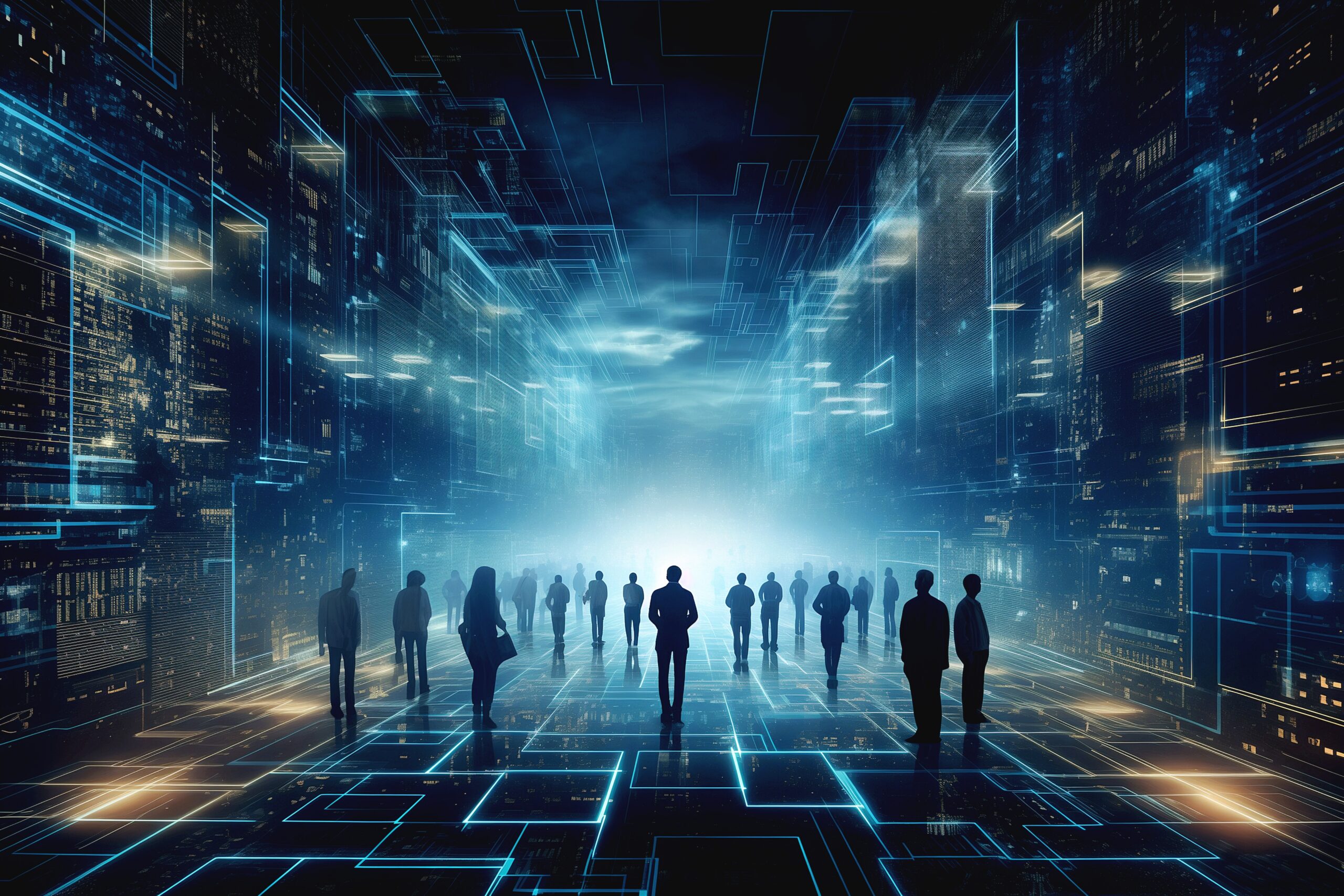 検索タグ:ビジネス・ビジネスシーン・背景用・背景素材・背景・文字入れ・コピースペース・テキストスペース・アイキャッチ・サムネイル・サムネ・画像・フリー素材・フリー、テクノロジー、AI、人工知能、シンギュラリティ、デジタル、AI画像、サイバー、メタバース、最新、技術、進化、インターネット、IT、空間