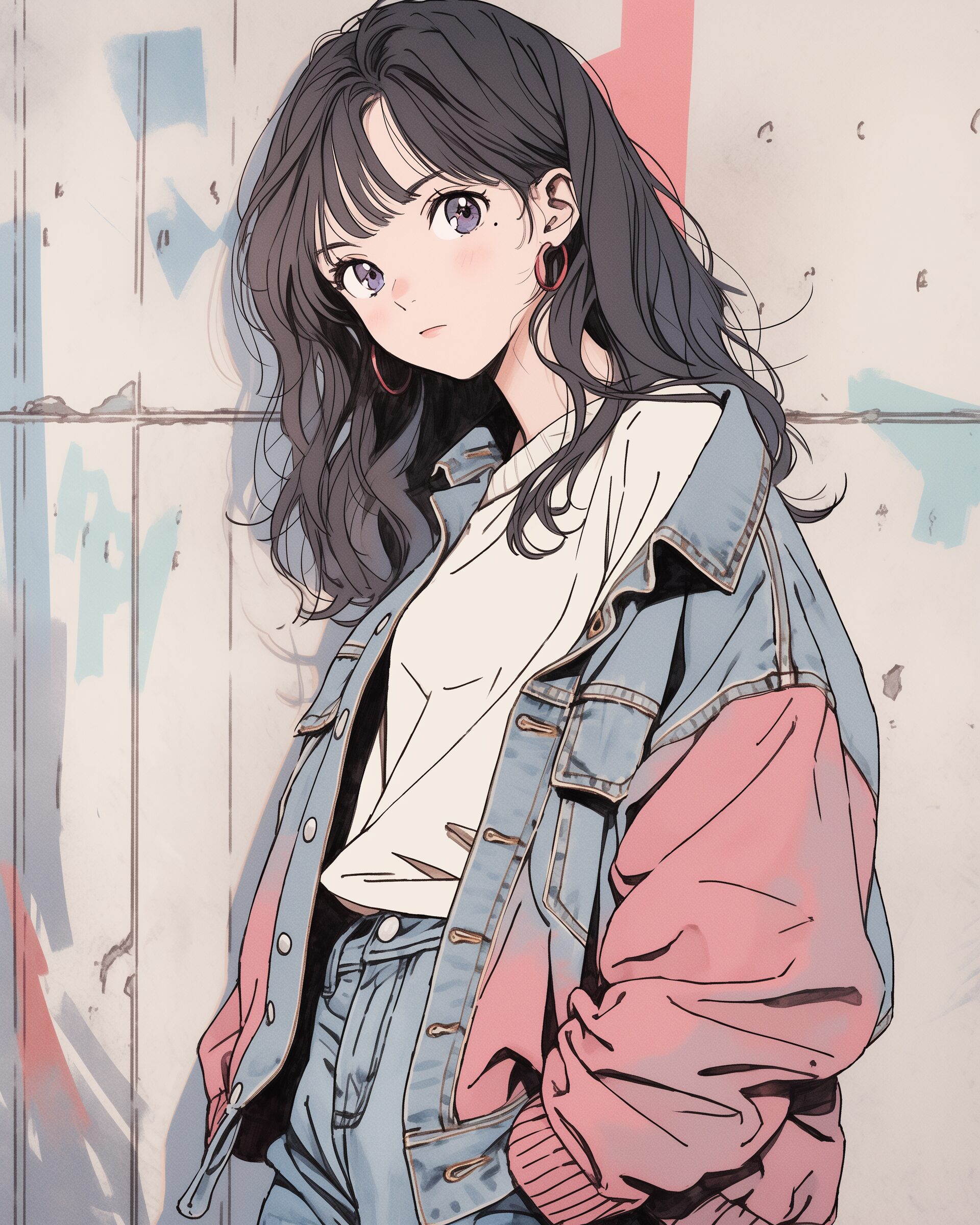 検索タグ:イラスト、ファッション、キャラクター、女性、女、女の子、女子、女の人、アニメ、漫画、マンガ、美人、美女、若い、かわいい、可愛い、カワイイ、萌え、萌え系、萌えキャラ、人物、顔、美しい、綺麗、きれい、キレイ、芸術、アート、顔、冬服、冬、洋服、お洒落、おしゃれ、オシャレ、コーデ、コーディネート、キュート、デニム、デニムジャケット