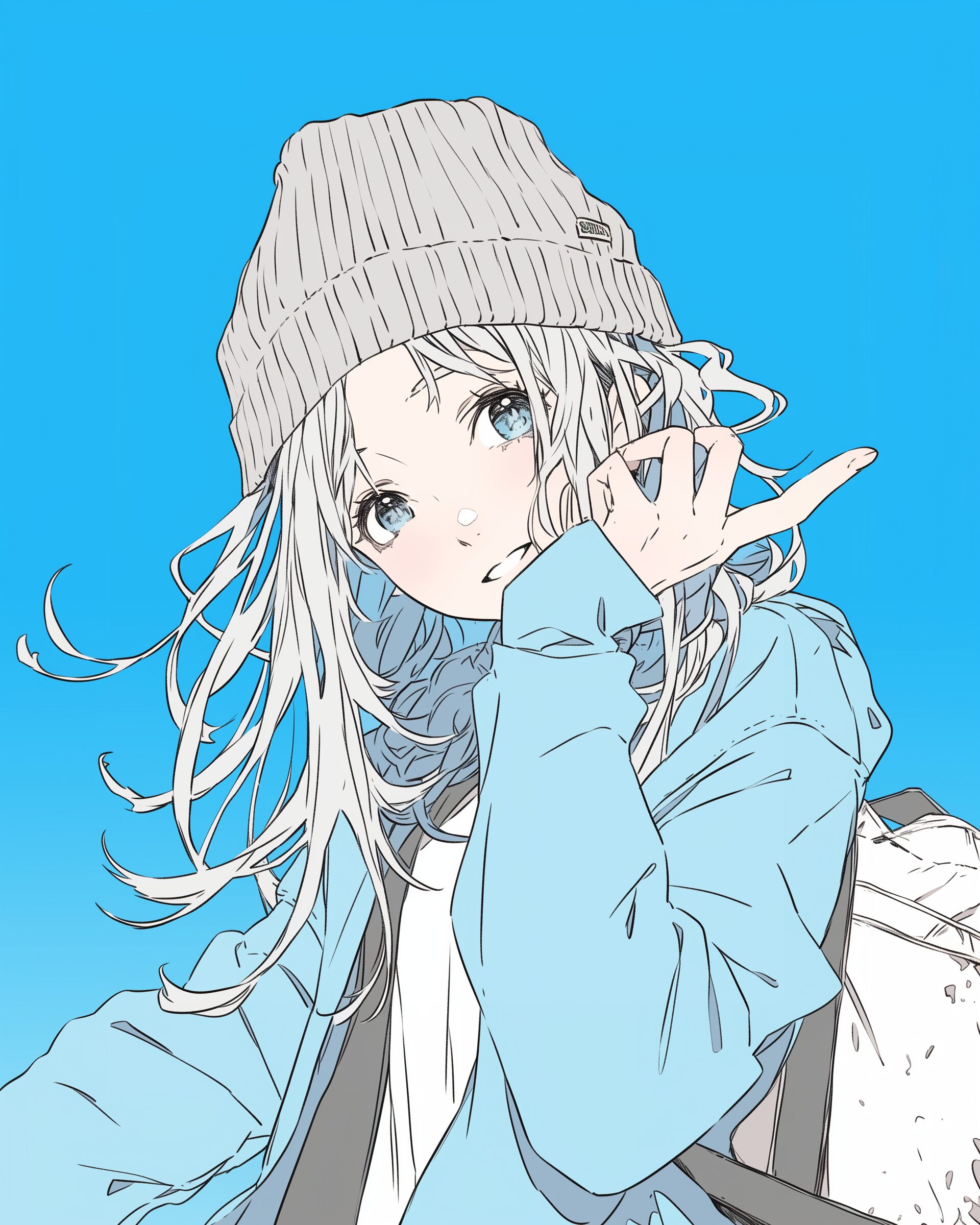 検索タグ:イラスト、ファッション、キャラクター、女性、女、女の子、女子、女の人、アニメ、漫画、マンガ、美人、美女、若い、かわいい、可愛い、カワイイ、人物、顔、美しい、綺麗、きれい、キレイ、アート、お洒落、挿絵、インスタ、Instagram、AI生成画像、fashion、コピースペース、銀髪、冬服、ニット帽
