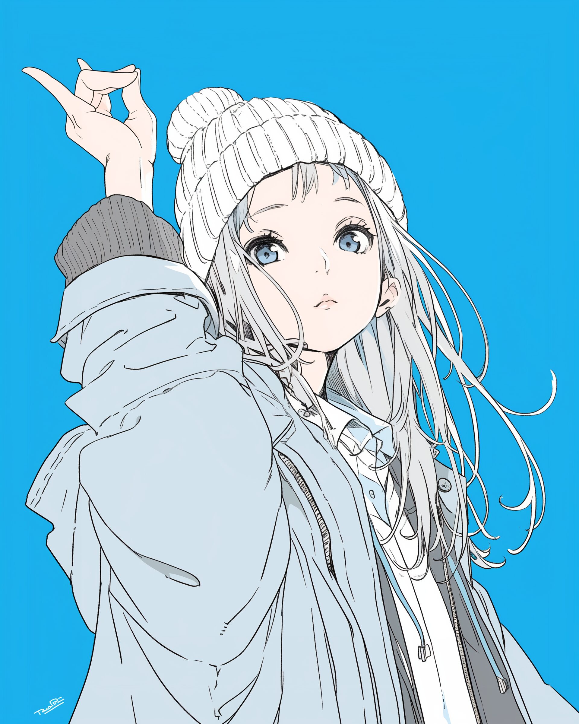 検索タグ:イラスト、ファッション、キャラクター、女性、女、女の子、女子、女の人、アニメ、漫画、マンガ、美人、美女、若い、かわいい、可愛い、カワイイ、人物、顔、美しい、綺麗、きれい、キレイ、アート、お洒落、挿絵、インスタ、Instagram、AI生成画像、fashion、コピースペース、銀髪、冬服、ニット帽