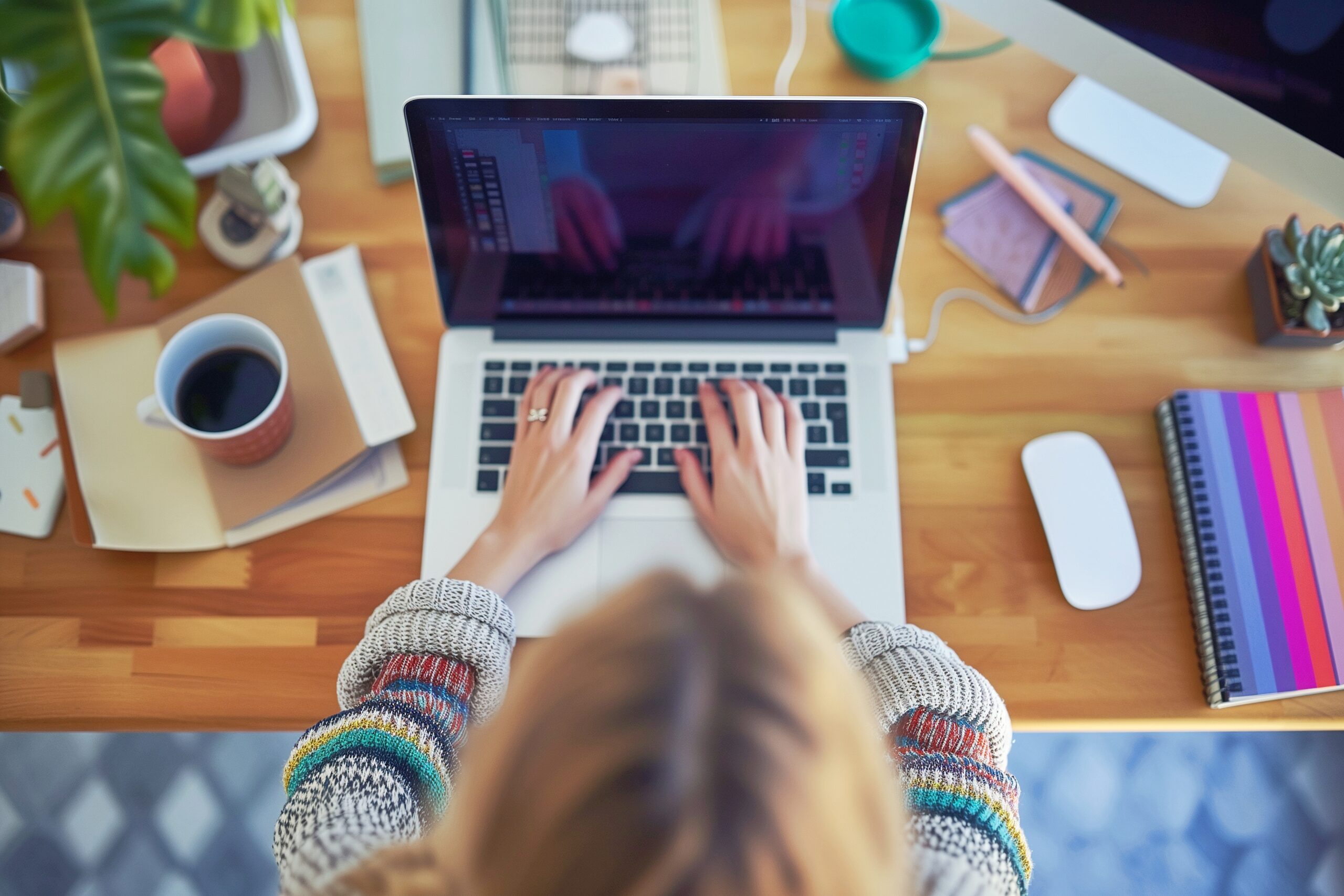 検索タグ:女性・女・女の人・女子・ビジネスウーマン・キャリアウーマン・フリーランス・個人事業主・パソコン・仕事・働く・デスクワーク・テレワーク・リモートワーク・PC・働く女性・自宅・家・後ろ姿・フリー素材・白・ノートパソコン、ノートPC、作業、タイピング、業務、パソコン作業、パソコン業務、事務作業、フリー画像、フリーランサー