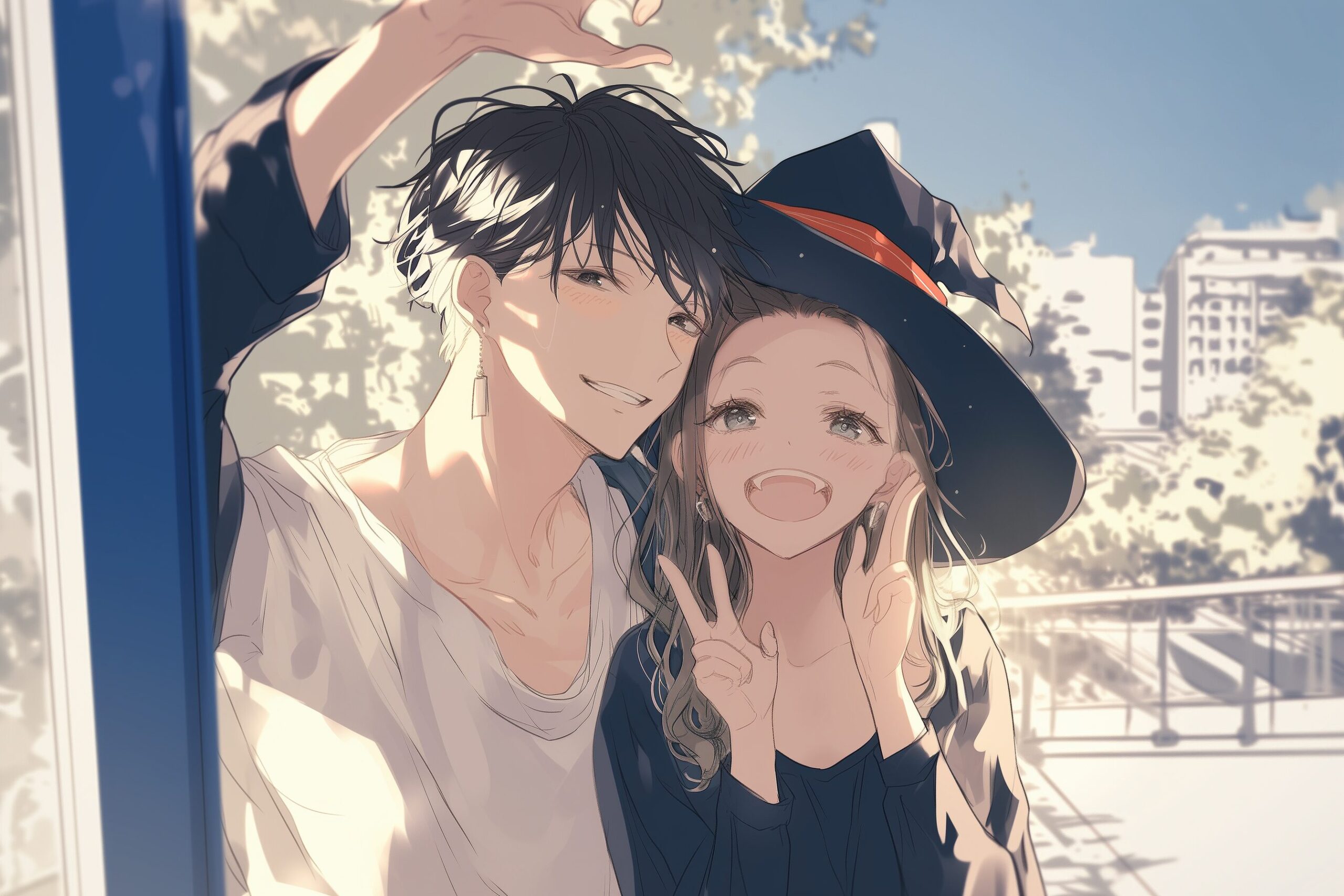 検索タグ:イラスト、ファッション、キャラクター、女性、女、女の子、女子、女の人、アニメ、漫画、マンガ、美人、美女、若い、かわいい、可愛い、カワイイ、人物、顔、美しい、綺麗、きれい、キレイ、アート、お洒落、挿絵、インスタ、Instagram、AI生成画像、コピースペース、カップル、恋人、愛、恋、恋愛、黒髪、笑顔、仲良し、男、男性、夫婦、寄り添う、ハロウィン、イベント、コスプレ、魔女、ハット、帽子、10月、秋