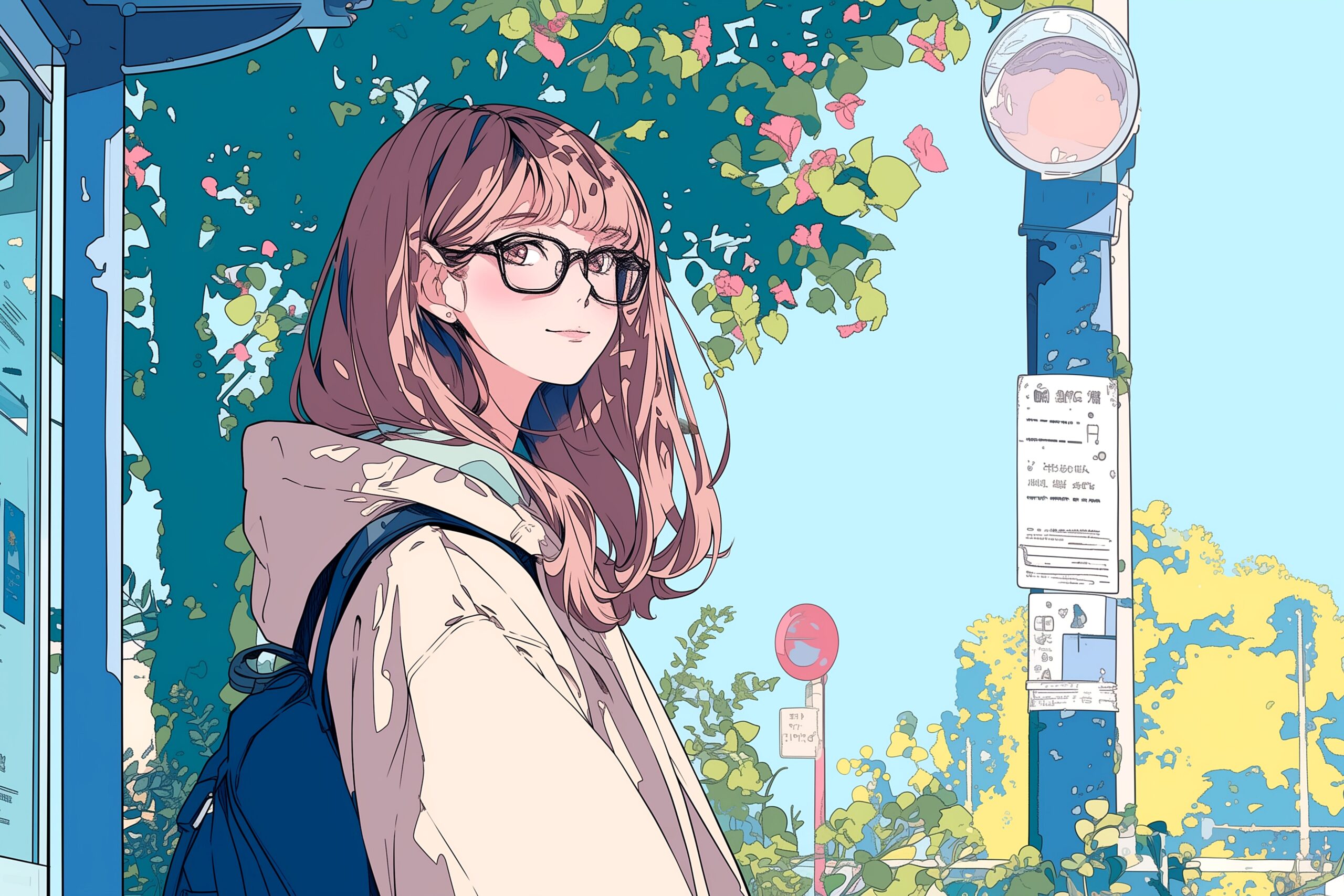 検索タグ:アイキャッチ、文字入れ、テキストスペース、コピースペース、イラスト、女の子、女性、女子、萌え、萌えキャラ、アニメ、漫画、可愛い、かわいい、カワイイ、アイコン、プロフィール画像、SNSアイコン、学生、バス停、お出かけ、待ち合わせ