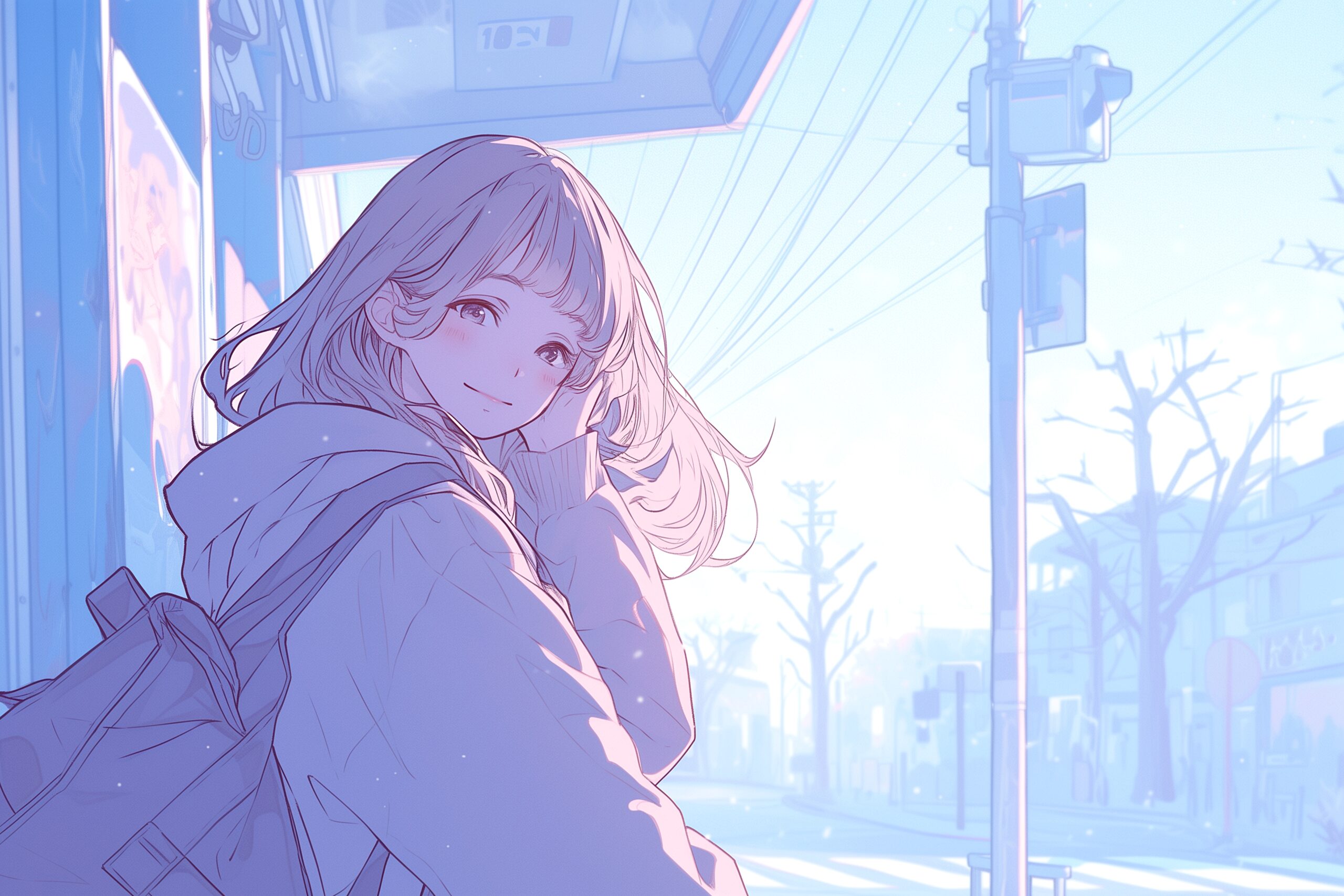検索タグ:アイキャッチ、文字入れ、テキストスペース、コピースペース、イラスト、女の子、女性、女子、萌え、萌えキャラ、アニメ、漫画、可愛い、かわいい、カワイイ、アイコン、プロフィール画像、SNSアイコン、学生、バス停、お出かけ、待ち合わせ