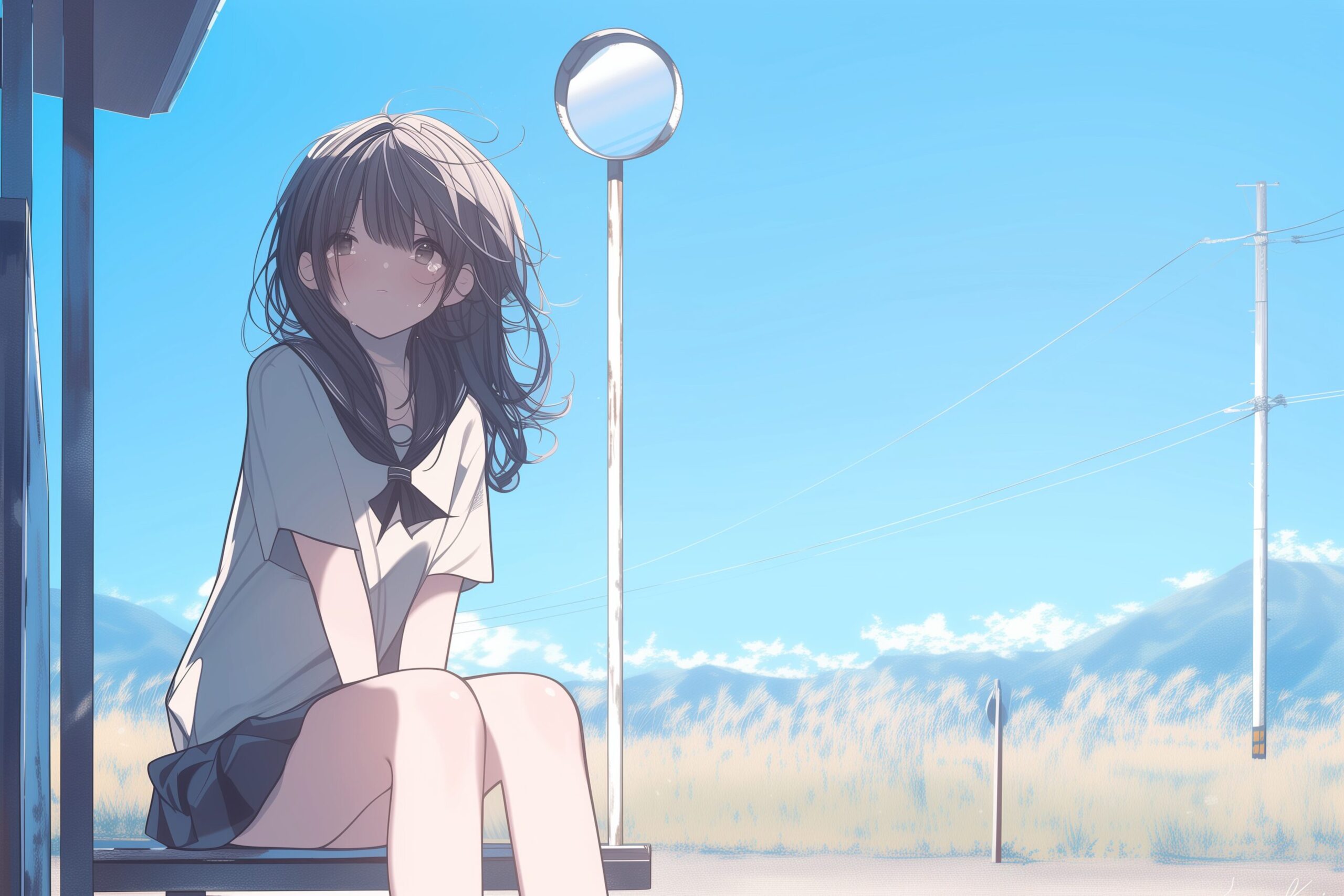 検索タグ:イラスト、キャラクター、女子、女の子、女性、女、女の人、アニメ、漫画、マンガ、若い、人物、顔、美しい、綺麗、きれい、キレイ、アート、お洒落、挿絵、インスタ、Instagram、AI生成画像、コピースペース、恋愛、恋、かわいい、可愛い、カワイイ、制服、黒髪、ロングヘア、悲しい、失恋、涙、泣く