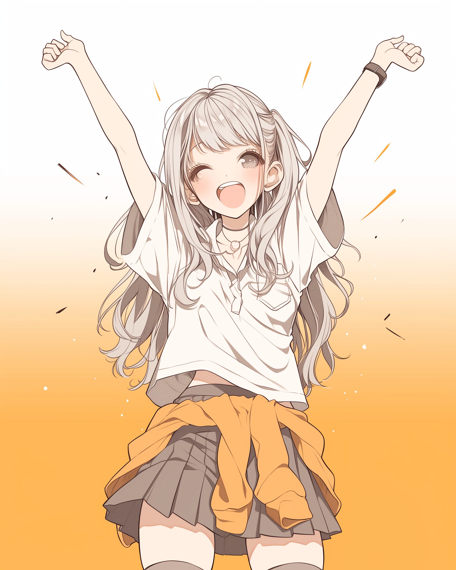 検索タグ:イラスト、ファッション、キャラクター、女性、女、女の子、女子、女の人、アニメ、漫画、マンガ、美人、美女、若い、かわいい、可愛い、カワイイ、人物、顔、美しい、綺麗、きれい、キレイ、アート、お洒落、挿絵、インスタ、Instagram、AI生成画像、fashion、コピースペース、おしゃれ、オシャレ、笑顔、銀髪、万歳、ばんざい、バンザイ