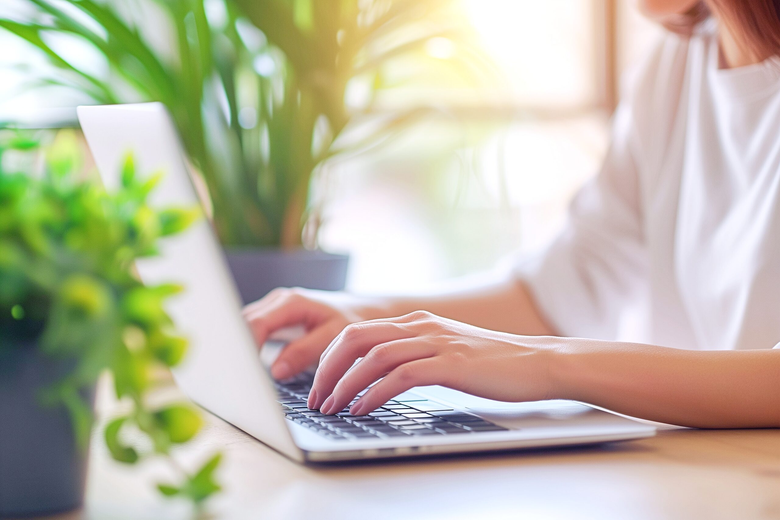 検索タグ:女性・女・女の人・女子・ビジネスウーマン・キャリアウーマン・フリーランス・個人事業主・パソコン・仕事・働く・デスクワーク・テレワーク・リモートワーク・PC・働く女性・自宅・家・後ろ姿・フリー素材・白・ノートパソコン、ノートPC、作業、タイピング、業務、パソコン作業、パソコン業務、事務作業、フリー画像、フリーランサー