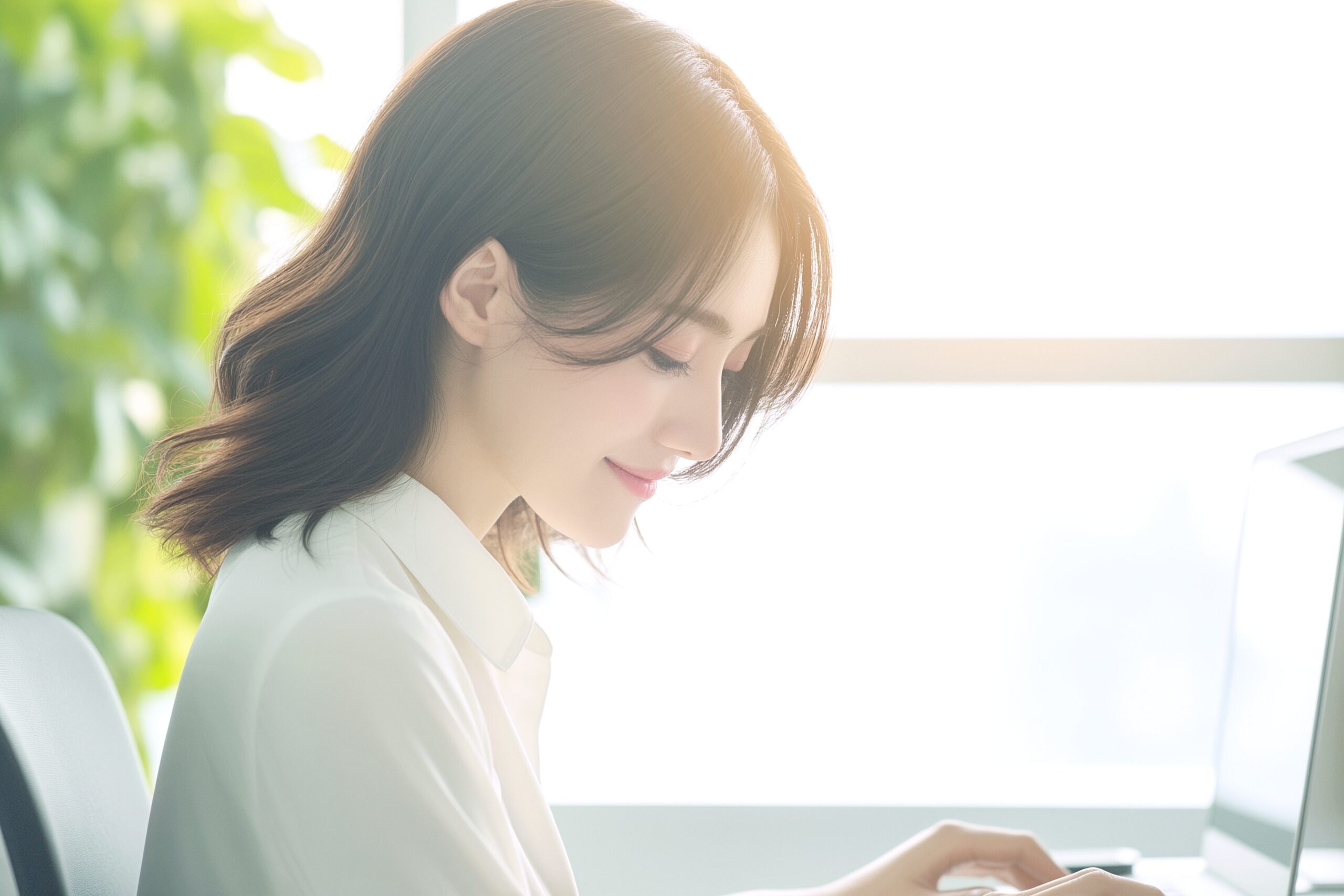 検索タグ:女性・女・女の人・女子・ビジネスウーマン・キャリアウーマン・フリーランス・個人事業主・パソコン・仕事・働く・デスクワーク・テレワーク・リモートワーク・PC・働く女性・自宅・家・後ろ姿・フリー素材・白・ノートパソコン、ノートPC、作業、タイピング、業務、パソコン作業、パソコン業務、事務作業、フリー画像、フリーランサー