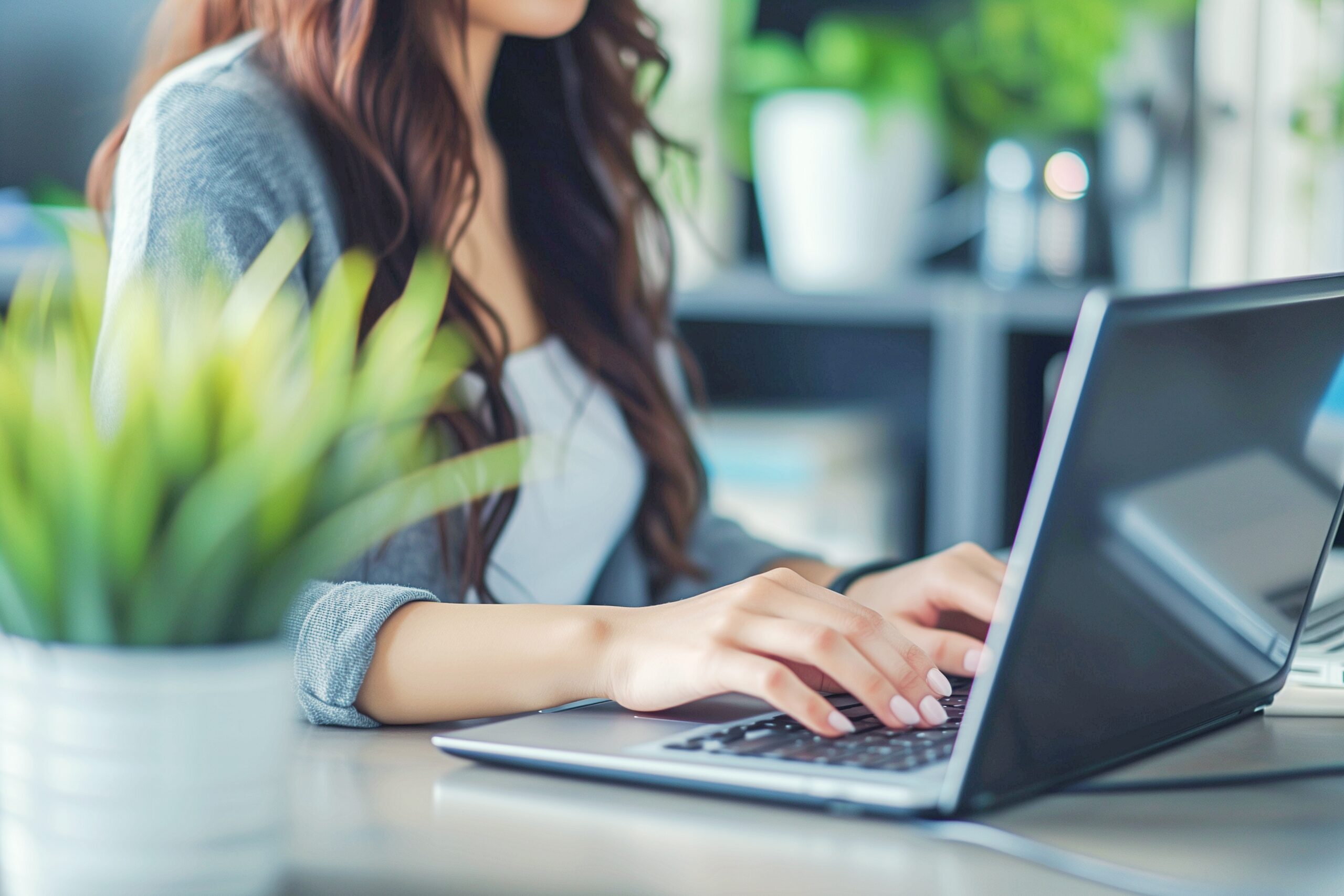 検索タグ:女性・女・女の人・女子・ビジネスウーマン・キャリアウーマン・フリーランス・個人事業主・パソコン・仕事・働く・デスクワーク・テレワーク・リモートワーク・PC・働く女性・自宅・家・後ろ姿・フリー素材・白・ノートパソコン、ノートPC、作業、タイピング、業務、パソコン作業、パソコン業務、事務作業、フリー画像、フリーランサー