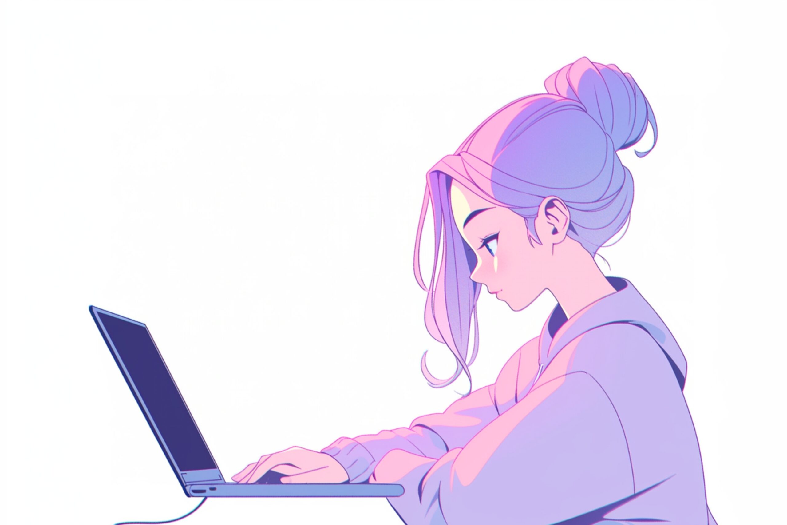 検索タグ:女性・女・女の人・女子・ビジネスウーマン・キャリアウーマン・フリーランス・個人事業主・パソコン・仕事・働く・デスクワーク・テレワーク・リモートワーク・PC・働く女性・自宅・家・後ろ姿・フリー素材・白・ノートパソコン、ノートPC、作業、タイピング、業務、パソコン作業、パソコン業務、事務作業、フリー画像、フリーランサー、オフィス、オフィスワーク、イラスト