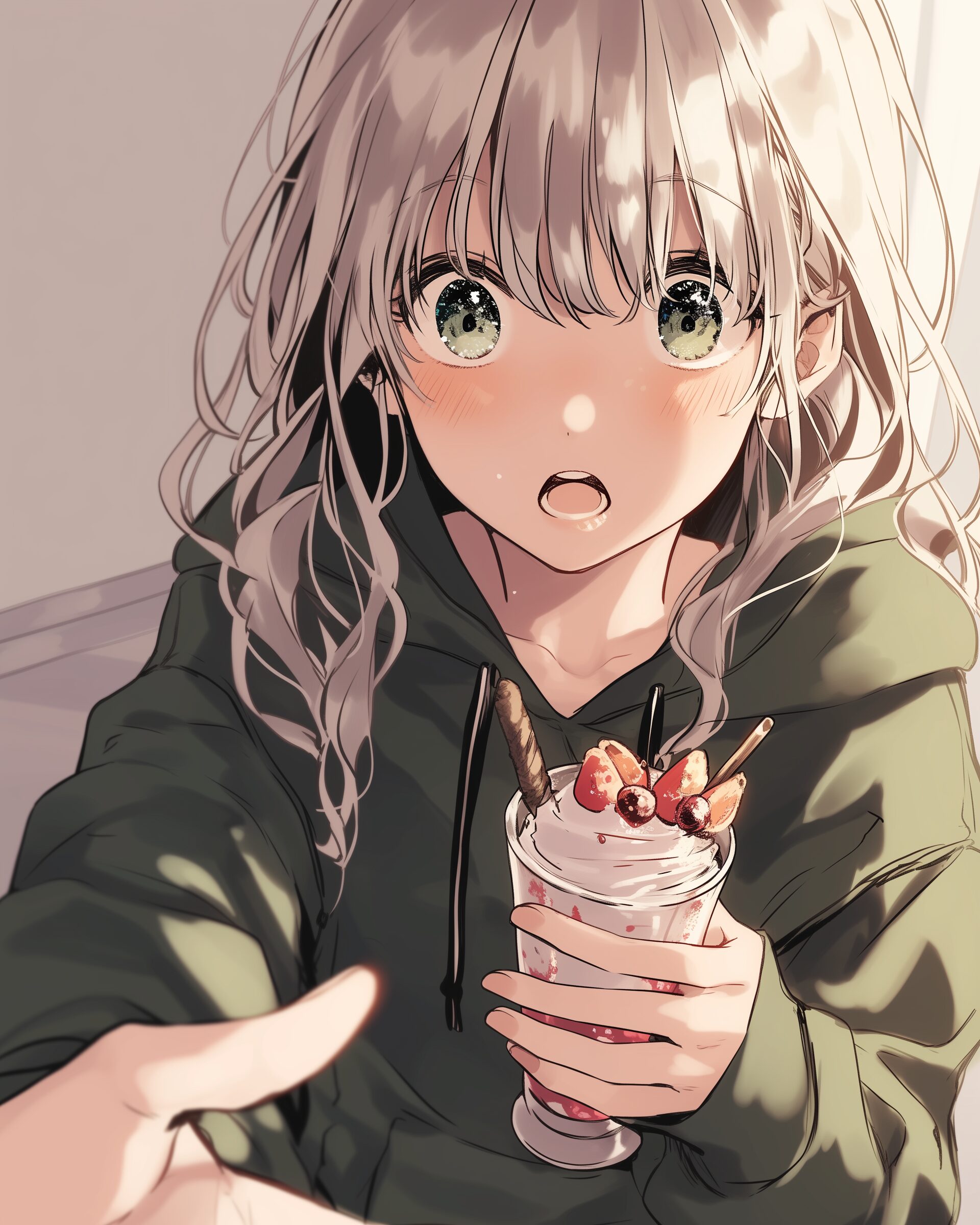 検索タグ:イラスト、ファッション、キャラクター、女性、女、女の子、女子、女の人、アニメ、漫画、マンガ、美人、美女、若い、かわいい、可愛い、カワイイ、人物、顔、美しい、綺麗、きれい、キレイ、アート、お洒落、挿絵、インスタ、Instagram、AI生成画像、fashion、コピースペース、銀髪、パーカー女子、パフェ、スイーツ、デザート、いちごパフェ、驚く、驚き、びっくり、ビックリ