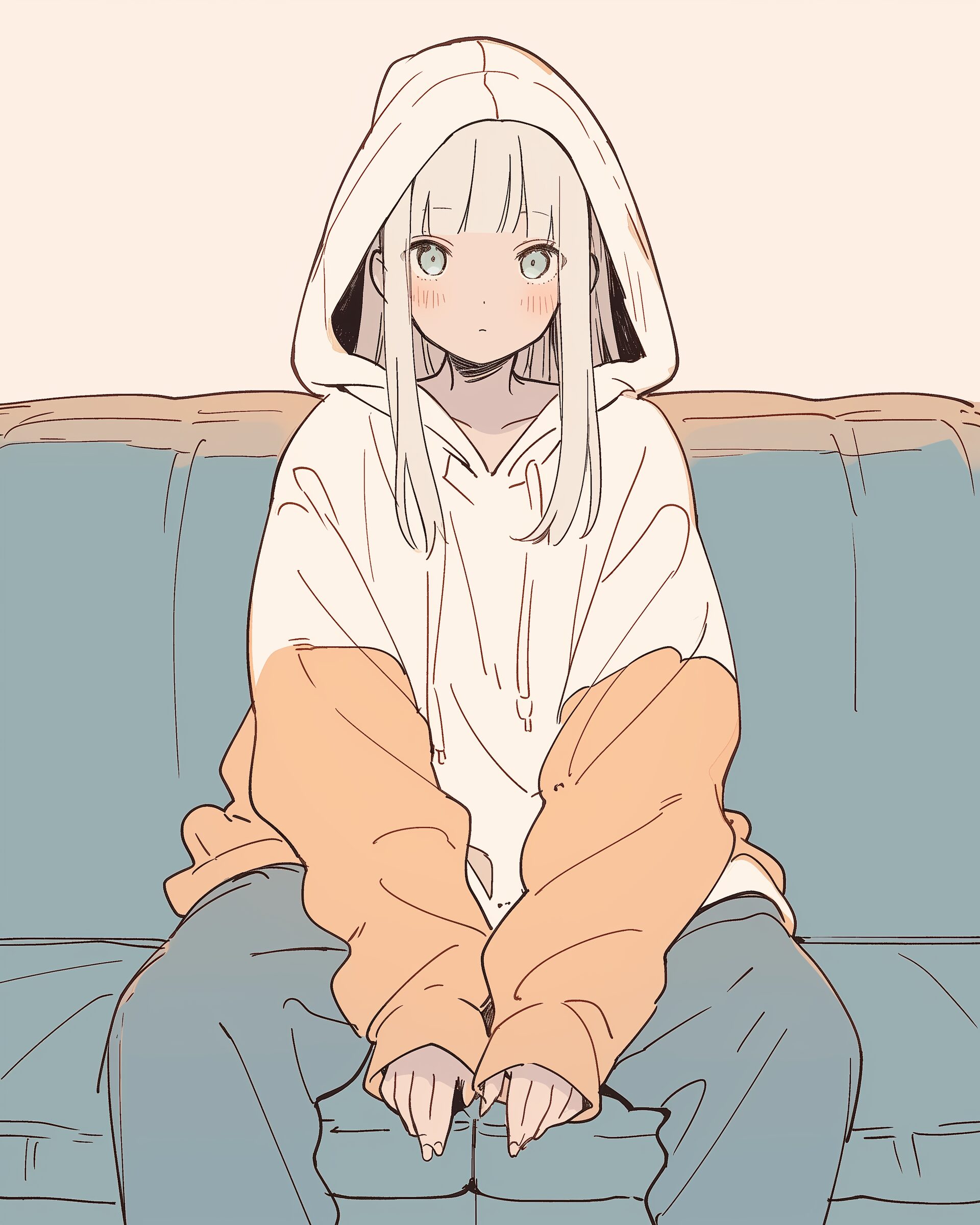 検索タグ:イラスト、ファッション、キャラクター、女性、女、女の子、女子、女の人、アニメ、漫画、マンガ、美人、美女、若い、かわいい、可愛い、カワイイ、人物、顔、美しい、綺麗、きれい、キレイ、アート、お洒落、挿絵、インスタ、Instagram、AI生成画像、fashion、コピースペース、おしゃれ、オシャレ、秋、秋服、冬服、パーカー女子、ソファ