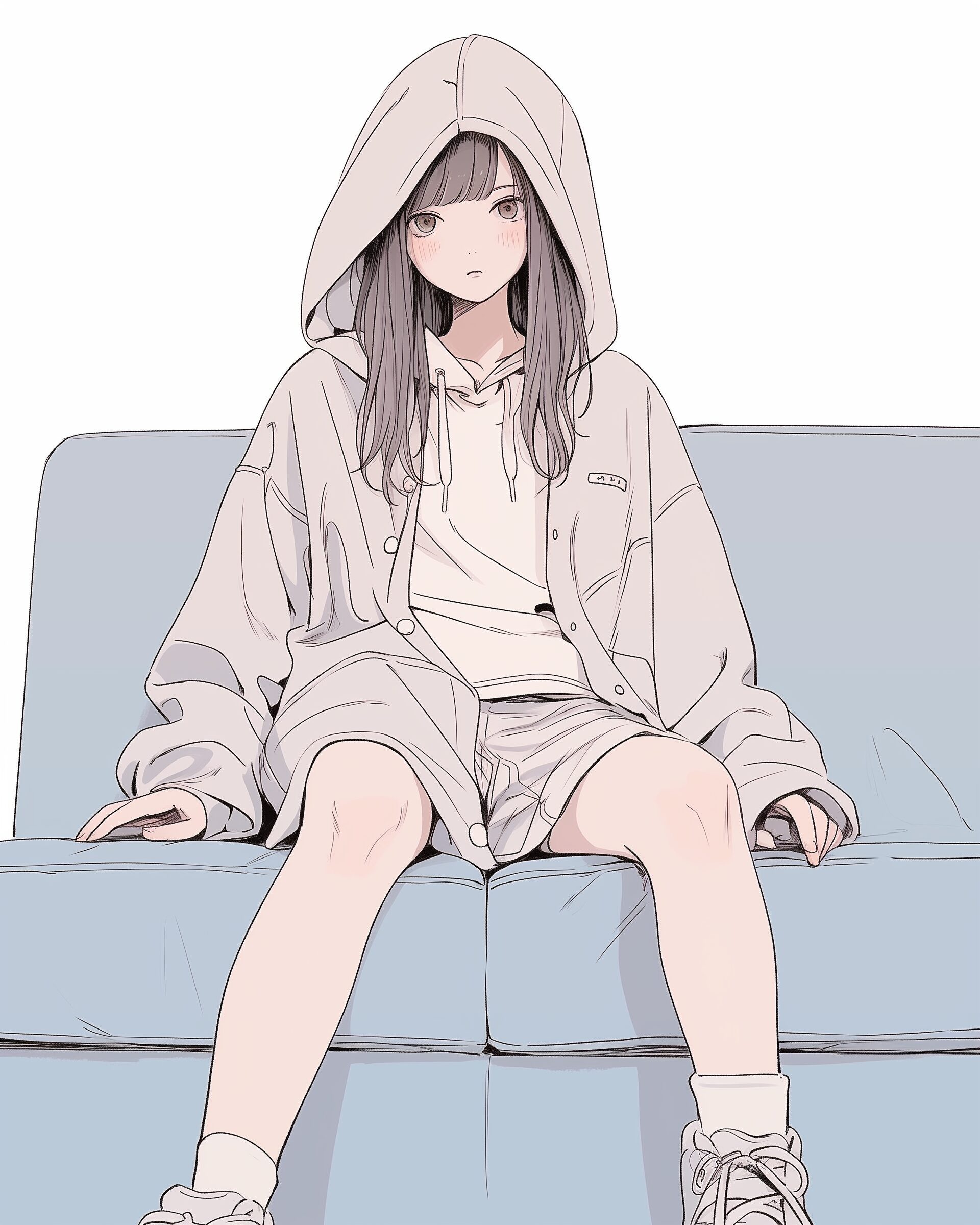 検索タグ:イラスト、ファッション、キャラクター、女性、女、女の子、女子、女の人、アニメ、漫画、マンガ、美人、美女、若い、かわいい、可愛い、カワイイ、人物、顔、美しい、綺麗、きれい、キレイ、アート、お洒落、挿絵、インスタ、Instagram、AI生成画像、fashion、コピースペース、おしゃれ、オシャレ、秋、秋服、冬服、パーカー女子、ソファ