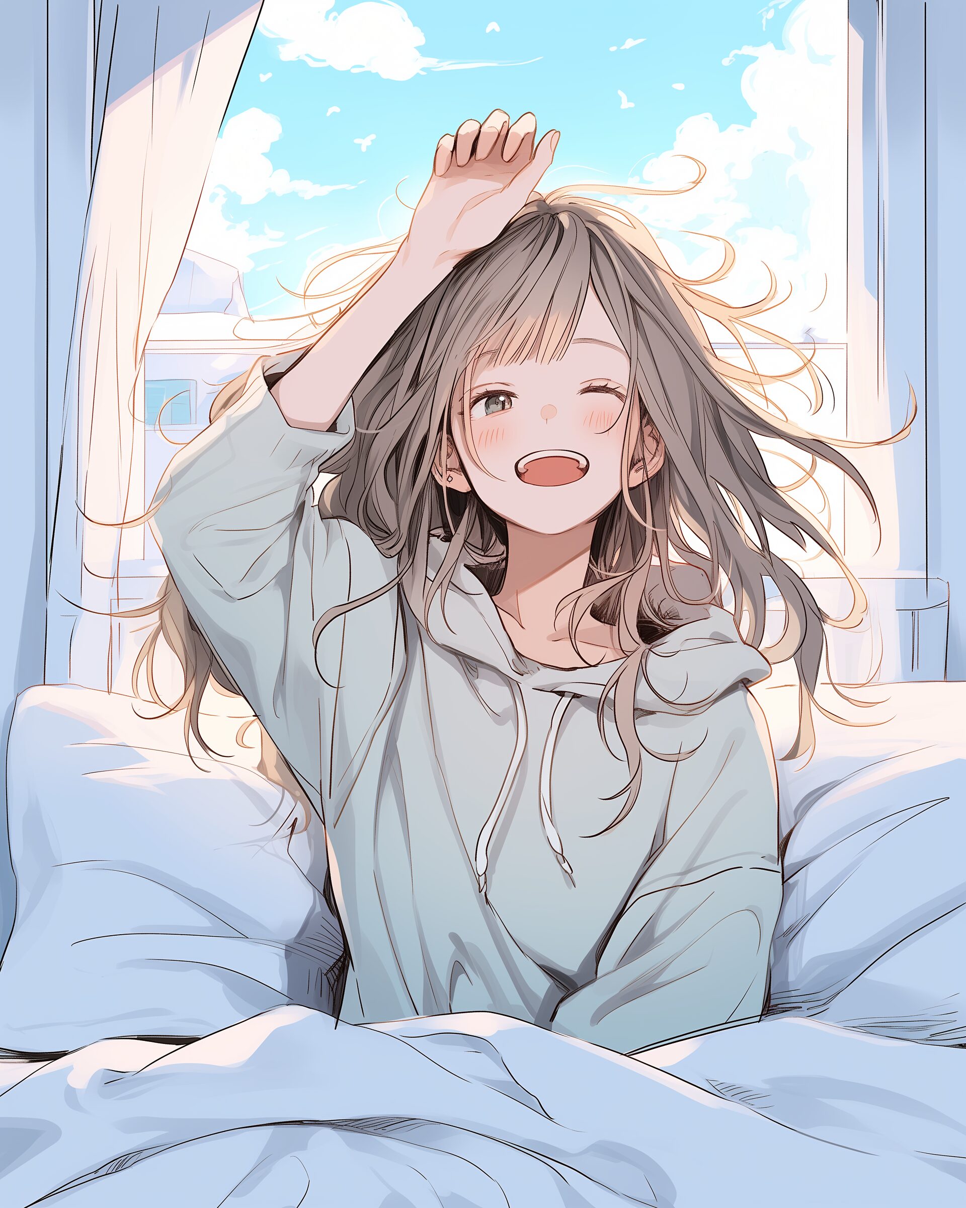 検索タグ:イラスト、ファッション、キャラクター、女性、女、女の子、女子、女の人、アニメ、漫画、マンガ、美人、美女、若い、かわいい、可愛い、カワイイ、人物、顔、美しい、綺麗、きれい、キレイ、アート、お洒落、挿絵、インスタ、Instagram、AI生成画像、fashion、コピースペース、おしゃれ、オシャレ、秋、秋服、待ち合わせ、秋冬ファッション、パーカー女子、1人、ベッド、笑顔、寝起き