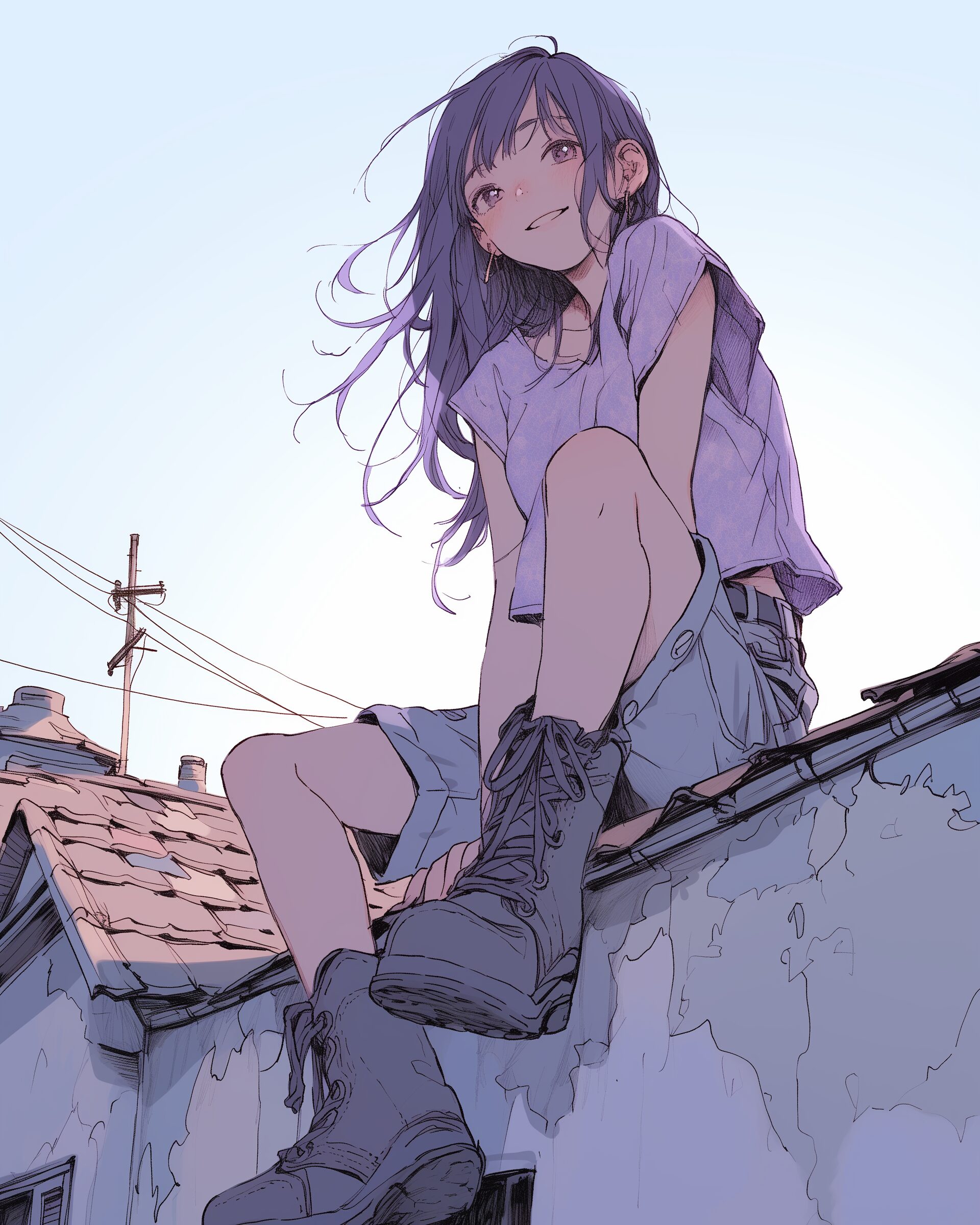 検索タグ:イラスト、ファッション、キャラクター、女性、女、女の子、女子、女の人、アニメ、漫画、マンガ、美人、美女、若い、かわいい、可愛い、カワイイ、人物、顔、美しい、綺麗、きれい、キレイ、アート、お洒落、女子高生、JK、挿絵、紫、パープル、シャツ、トップス、春服