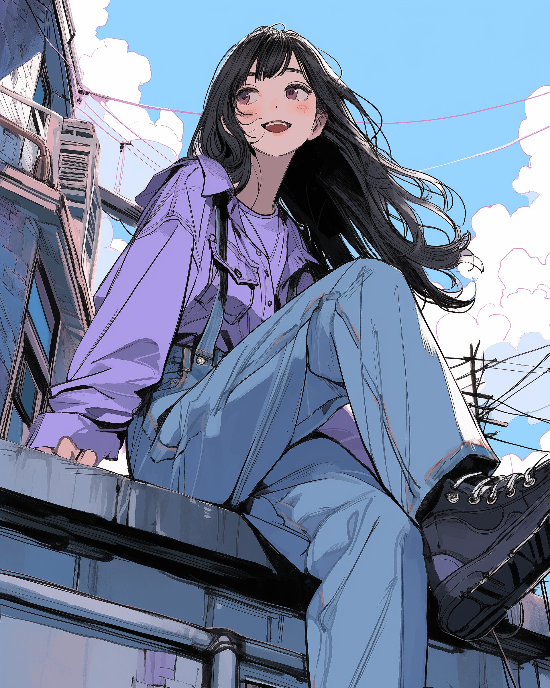 検索タグ:イラスト、ファッション、キャラクター、女性、女、女の子、女子、女の人、アニメ、漫画、マンガ、美人、美女、若い、かわいい、可愛い、カワイイ、人物、顔、美しい、綺麗、きれい、キレイ、アート、お洒落、女子高生、JK、挿絵、紫、パープル、シャツ、トップス、春服