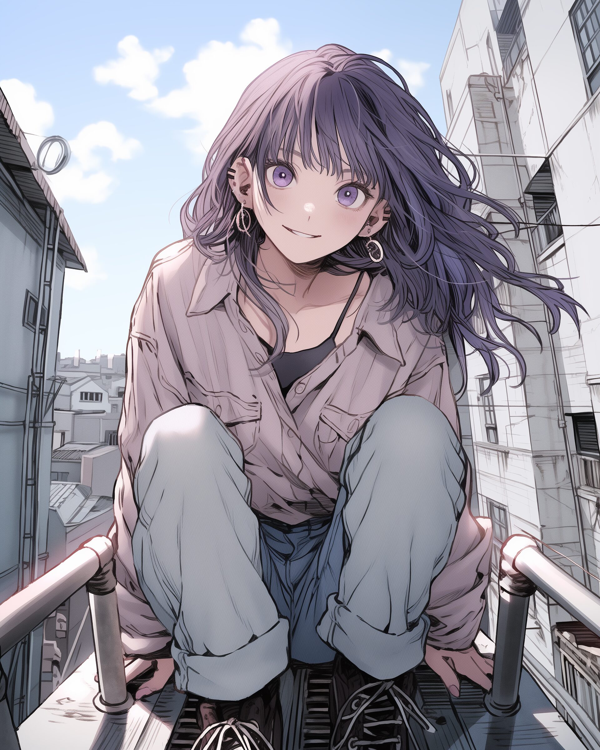 検索タグ:イラスト、ファッション、キャラクター、女性、女、女の子、女子、女の人、アニメ、漫画、マンガ、美人、美女、若い、かわいい、可愛い、カワイイ、人物、顔、美しい、綺麗、きれい、キレイ、アート、お洒落、女子高生、JK、挿絵、紫、パープル、シャツ、トップス、春服