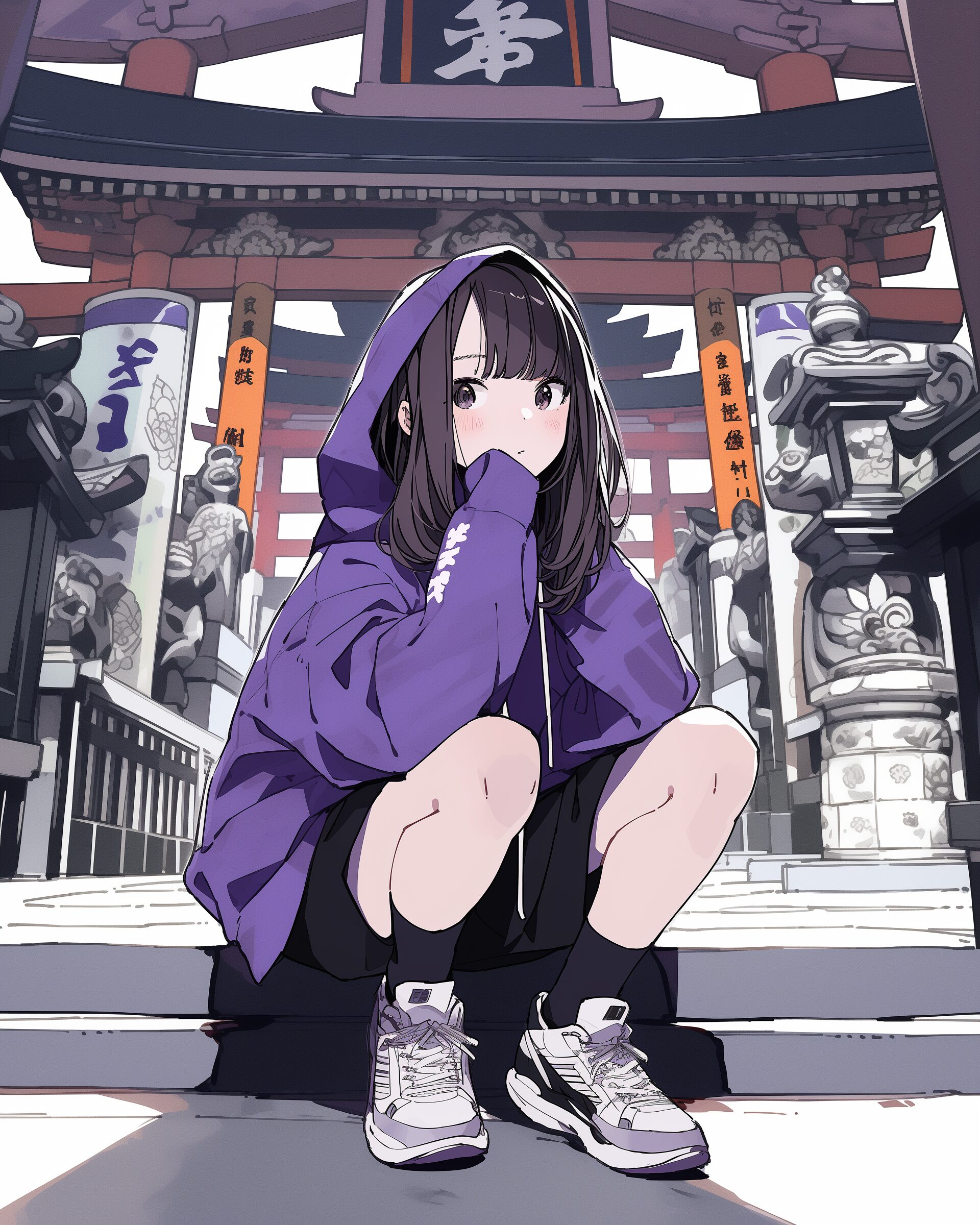 検索タグ:イラスト、ファッション、キャラクター、女性、女、女の子、女子、女の人、アニメ、漫画、マンガ、美人、美女、若い、かわいい、可愛い、カワイイ、萌え、萌え系、萌えキャラ、人物、顔、美しい、綺麗、きれい、キレイ、芸術、アート、顔、冬服、冬、洋服、お洒落、おしゃれ、オシャレ、コーデ、コーディネート、キュート、紫、パープル、神社