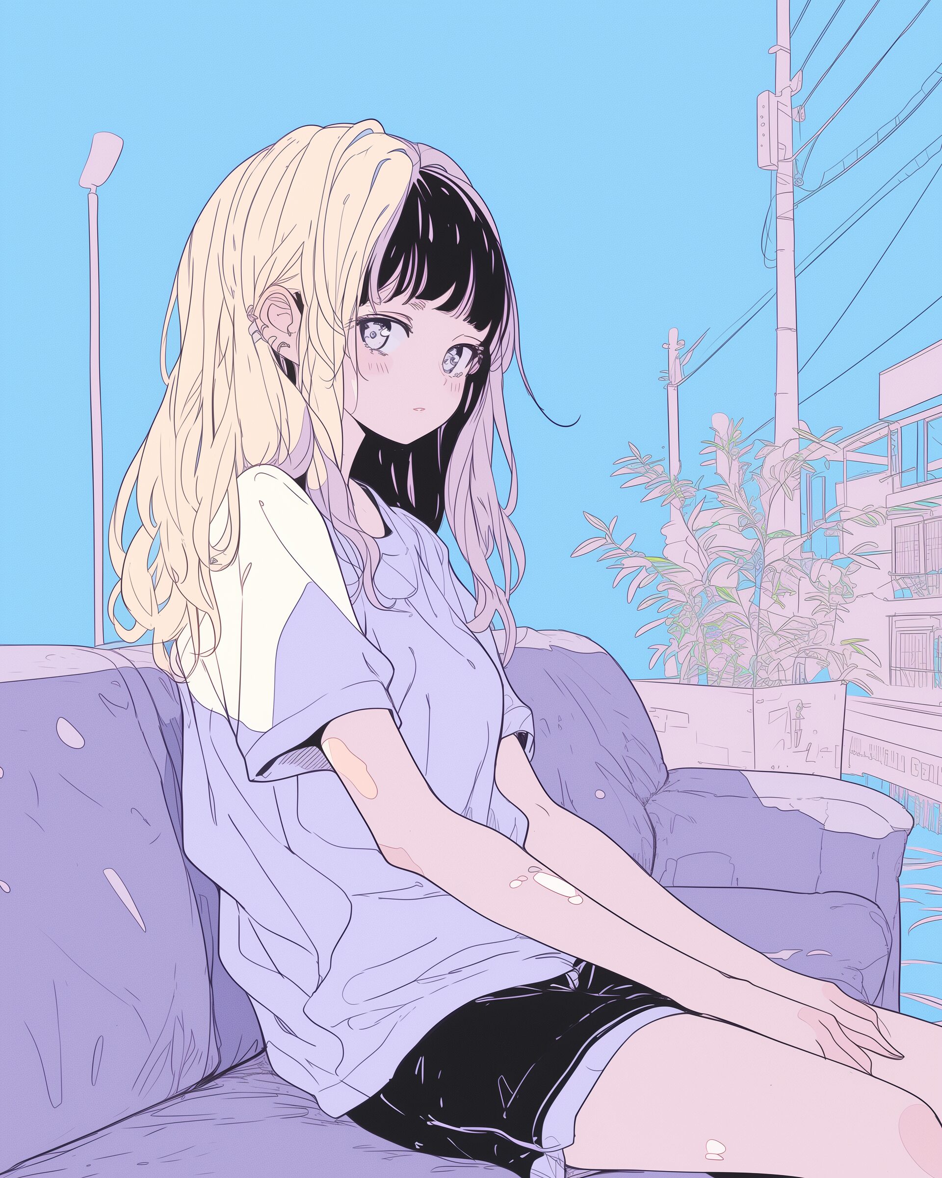 検索タグ:イラスト、ファッション、キャラクター、女性、女、女の子、女子、女の人、アニメ、漫画、マンガ、美人、美女、若い、かわいい、可愛い、カワイイ、人物、顔、美しい、綺麗、きれい、キレイ、アート、お洒落、女子高生、JK、挿絵、夏、春、パステルカラー、春服、インスタ、Instagram、夏、夏服、summer、fashion、パープル、紫、purple