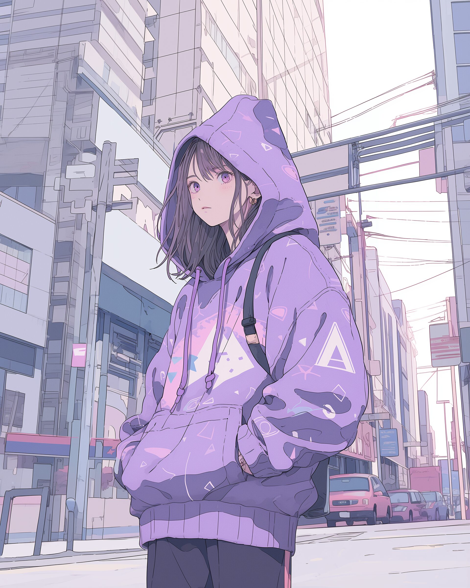 検索タグ:イラスト、ファッション、キャラクター、女性、女、女の子、女子、女の人、アニメ、漫画、マンガ、美人、美女、若い、かわいい、可愛い、カワイイ、人物、顔、美しい、綺麗、きれい、キレイ、アート、お洒落、女子高生、JK、挿絵、夏、春、パステルカラー、春服、インスタ、Instagram、夏、夏服、summer、fashion、パープル、purple