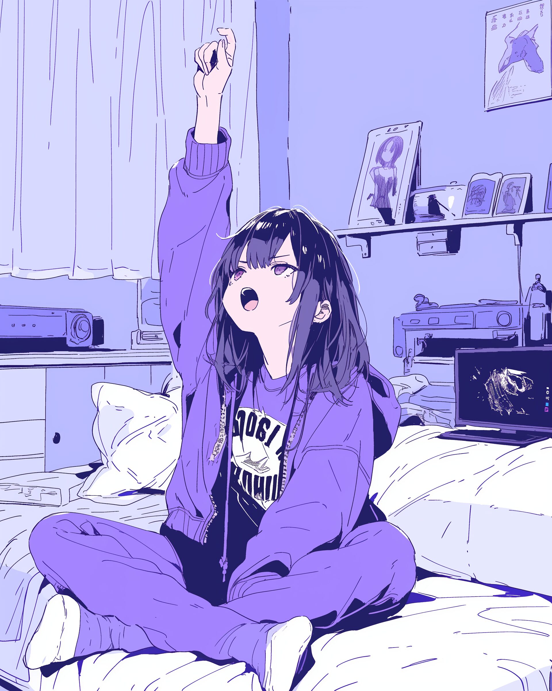 検索タグ:イラスト、ファッション、キャラクター、女性、女、女の子、女子、女の人、アニメ、漫画、マンガ、美人、美女、若い、かわいい、可愛い、カワイイ、人物、顔、美しい、綺麗、きれい、キレイ、アート、お洒落、女子高生、JK、挿絵、夏、春、パステルカラー、トップス、春服、インスタ、Instagram、紫、パープル、purple、感情、emotion、emotional