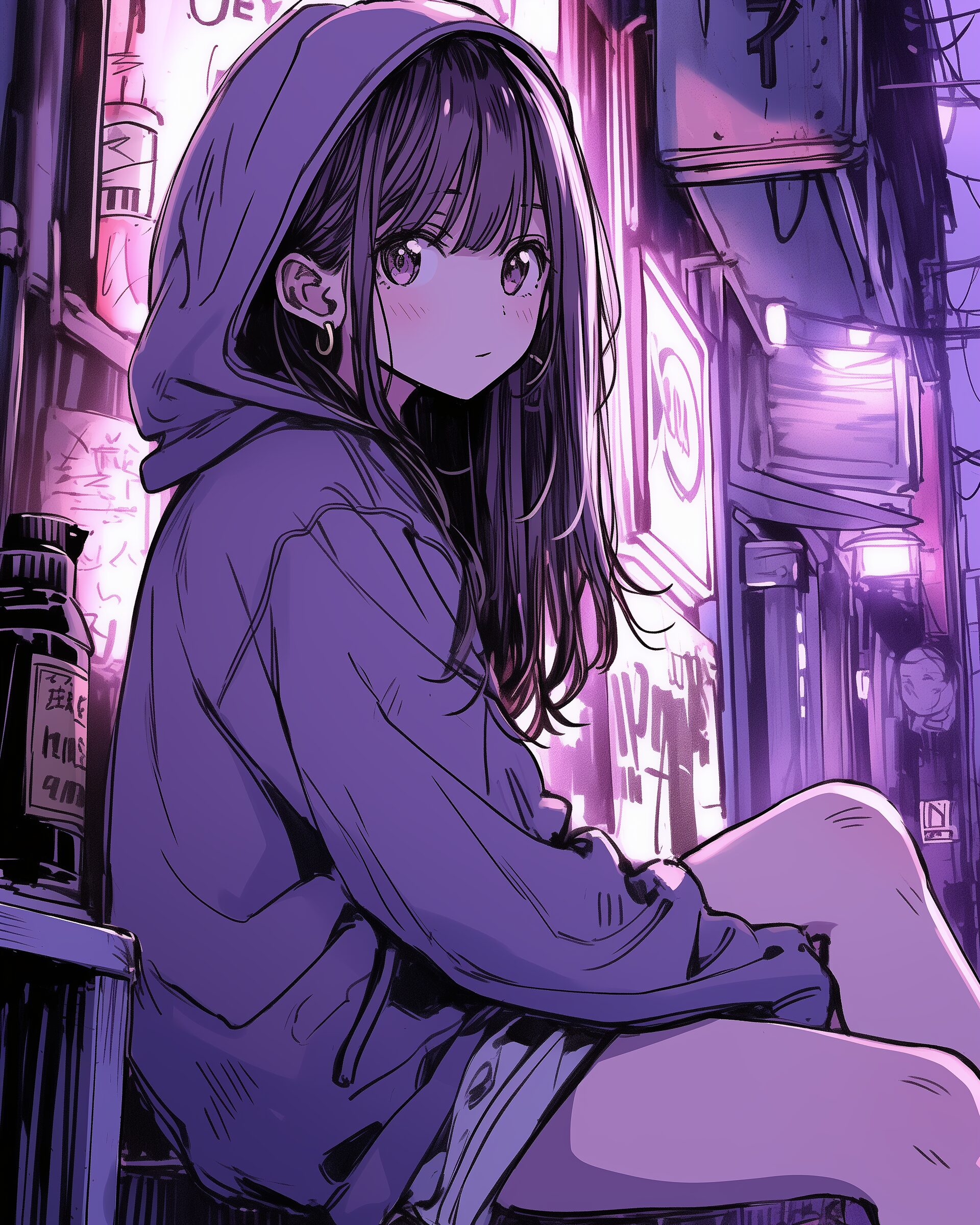 検索タグ:イラスト、ファッション、キャラクター、女性、女、女の子、女子、女の人、アニメ、漫画、マンガ、美人、美女、若い、かわいい、可愛い、カワイイ、人物、顔、美しい、綺麗、きれい、キレイ、アート、洋服、お洒落、パーカー女子、パーカー、パープル、紫、女子高生、JK