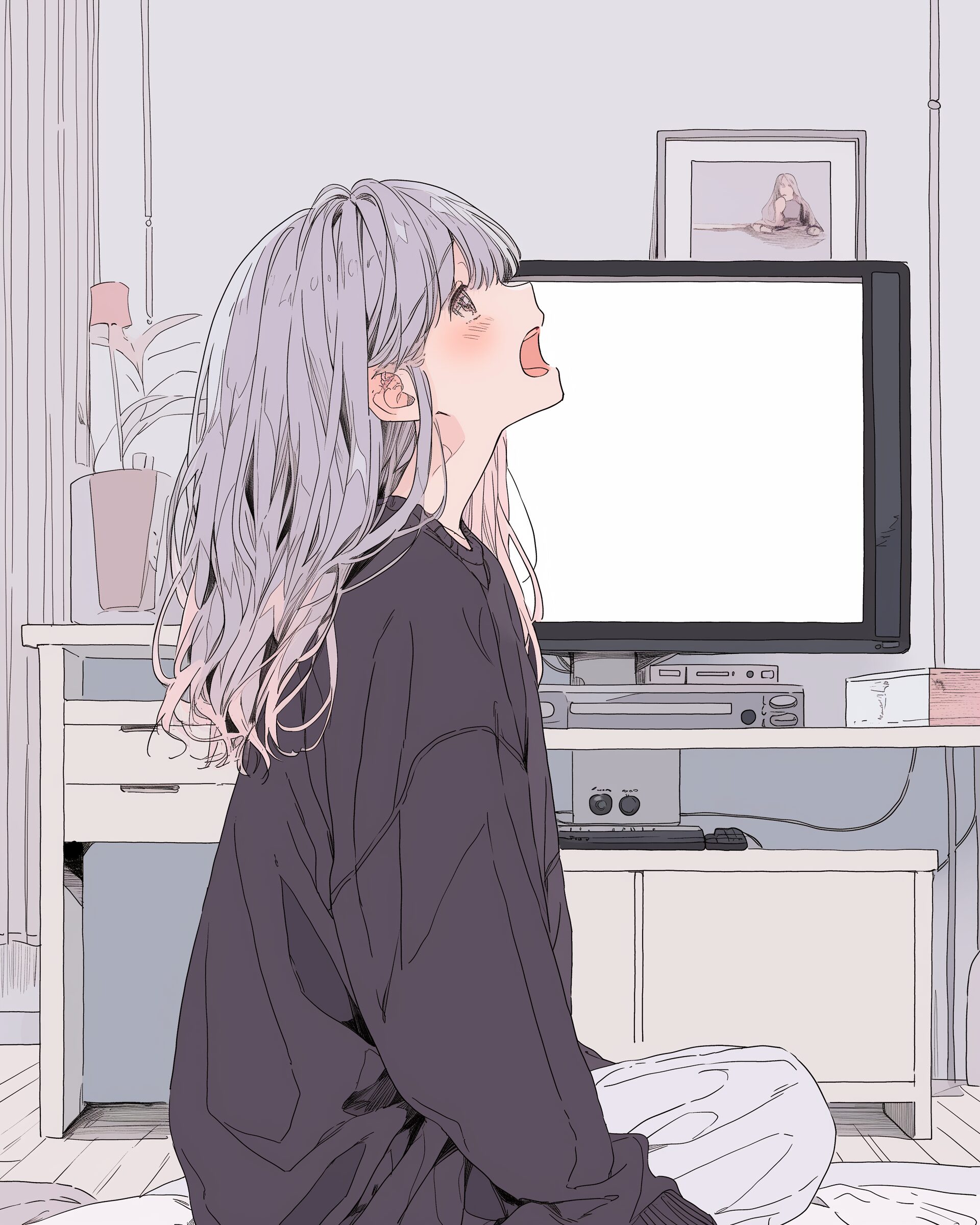 検索タグ:イラスト、ファッション、キャラクター、女性、女、女の子、女子、女の人、アニメ、漫画、マンガ、美人、美女、若い、かわいい、可愛い、カワイイ、人物、顔、美しい、綺麗、きれい、キレイ、アート、お洒落、女子高生、JK、挿絵、夏、春、パステルカラー、トップス、春服、インスタ、Instagram、紫、パープル、purple、感情、emotion、emotional