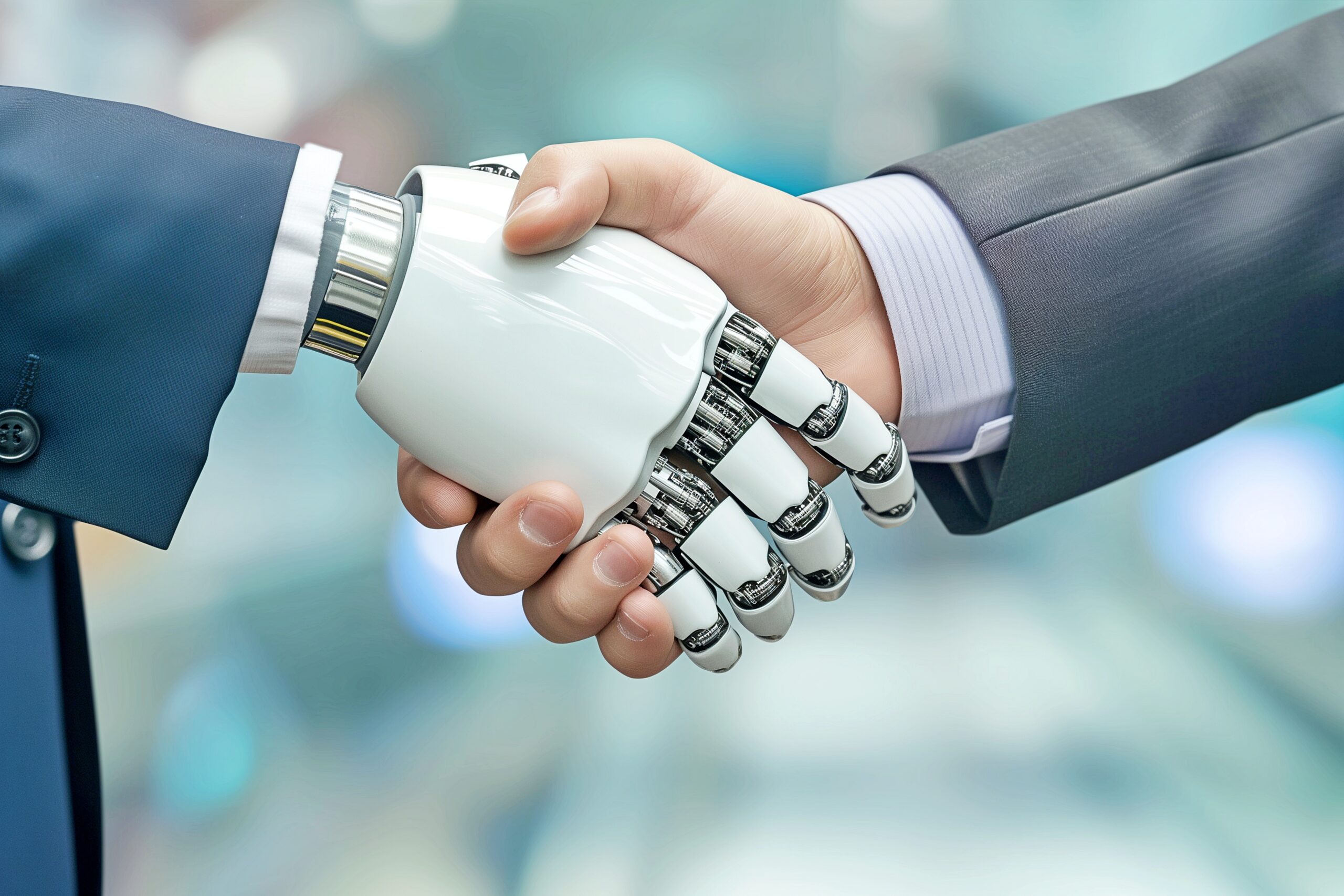 ビジネスマンとロボットの握手02