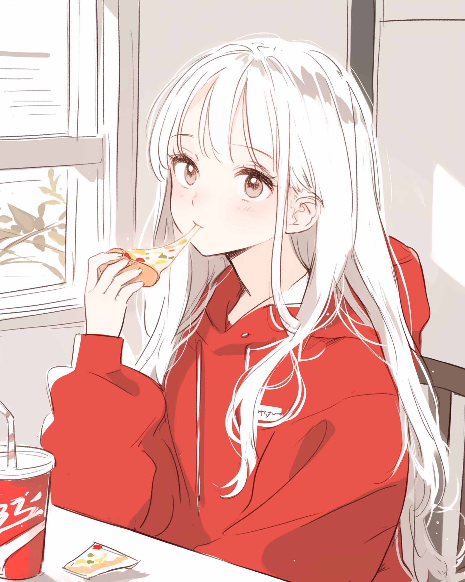 検索タグ:イラスト、ファッション、キャラクター、女性、女、女の子、女子、女の人、アニメ、漫画、マンガ、美人、美女、若い、かわいい、可愛い、カワイイ、人物、顔、美しい、綺麗、きれい、キレイ、アート、お洒落、挿絵、インスタ、Instagram、AI生成画像、fashion、コピースペース、おしゃれ、オシャレ、冬服、パーカー女子、ピザ