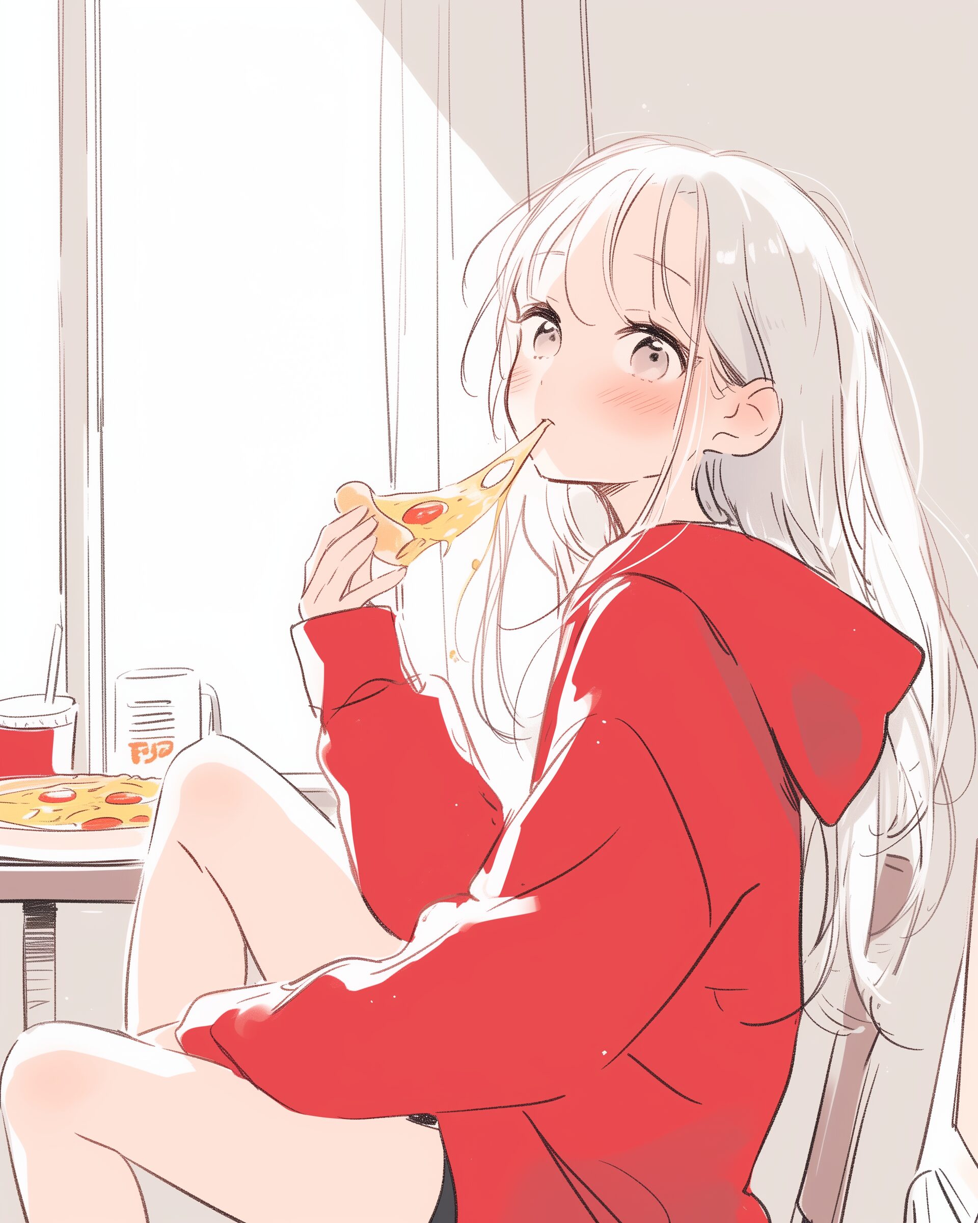 検索タグ:イラスト、ファッション、キャラクター、女性、女、女の子、女子、女の人、アニメ、漫画、マンガ、美人、美女、若い、かわいい、可愛い、カワイイ、人物、顔、美しい、綺麗、きれい、キレイ、アート、お洒落、挿絵、インスタ、Instagram、AI生成画像、fashion、コピースペース、おしゃれ、オシャレ、冬服、パーカー女子、ピザ