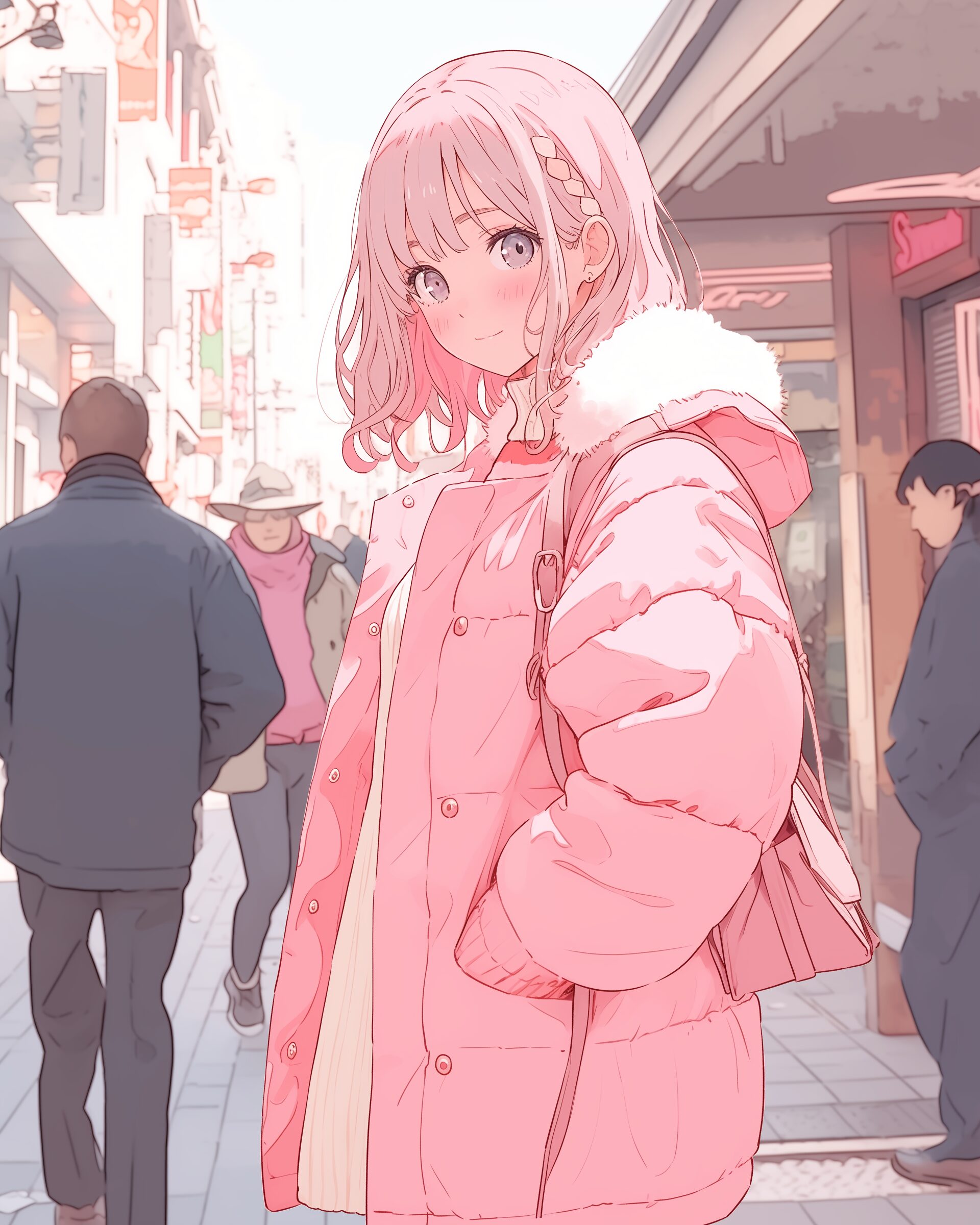 検索タグ:イラスト、ファッション、キャラクター、女性、女、女の子、女子、女の人、アニメ、漫画、マンガ、美人、美女、若い、かわいい、可愛い、カワイイ、萌え、萌え系、萌えキャラ、人物、顔、美しい、綺麗、きれい、キレイ、芸術、アート、顔、冬服、冬、洋服、お洒落、AI生成画像、おしゃれ、オシャレ、コーデ、コーディネート、パーカー、パーカー女子、キュート、コート、ピンク