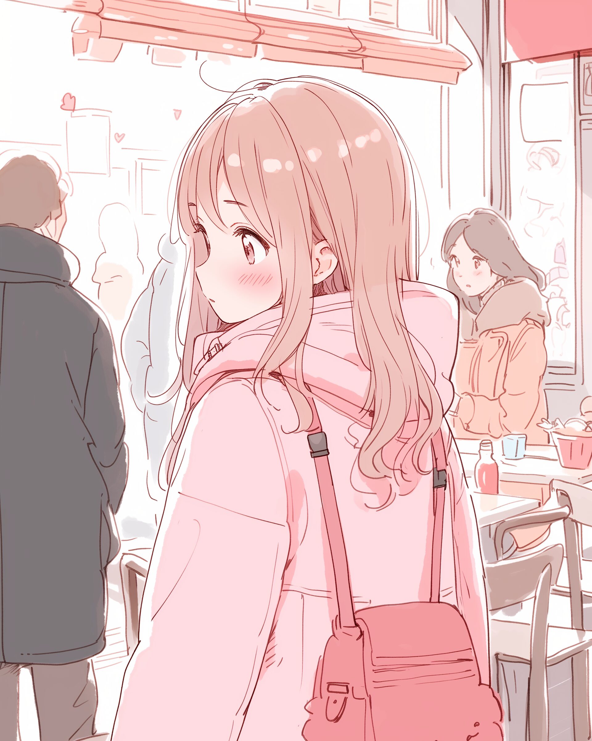 検索タグ:イラスト、ファッション、キャラクター、女性、女、女の子、女子、女の人、アニメ、漫画、マンガ、美人、美女、若い、かわいい、可愛い、カワイイ、萌え、萌え系、萌えキャラ、人物、顔、美しい、綺麗、きれい、キレイ、芸術、アート、顔、冬服、AI生成画像、冬、洋服、お洒落、おしゃれ、オシャレ、コーデ、コーディネート、パーカー、パーカー女子、キュート、コート、ピンク