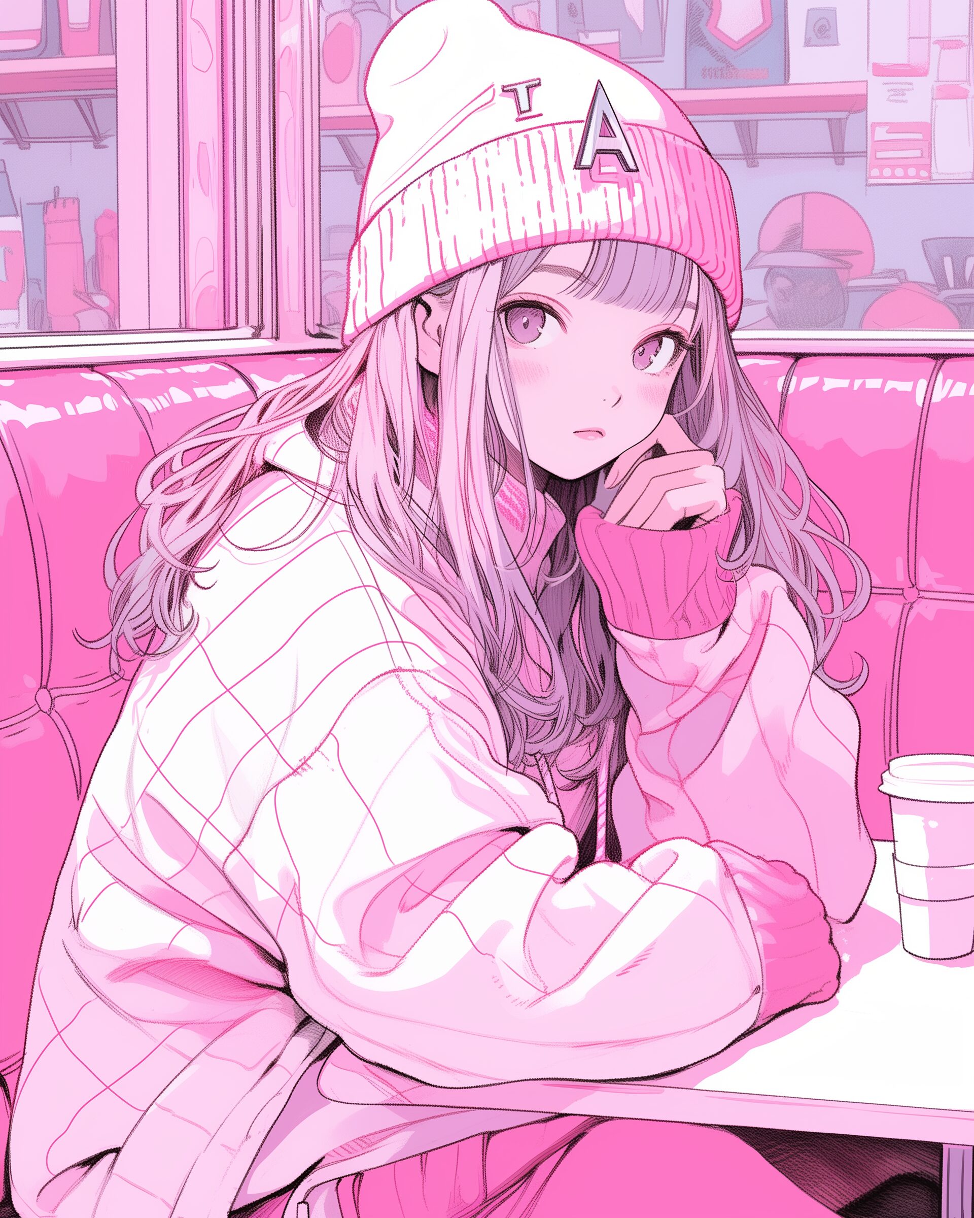 検索タグ:イラスト、ファッション、キャラクター、女性、女、女の子、女子、女の人、アニメ、漫画、マンガ、美人、美女、若い、かわいい、可愛い、カワイイ、人物、顔、美しい、綺麗、きれい、キレイ、アート、お洒落、挿絵、インスタ、Instagram、fashion、コピースペース、おしゃれ、オシャレ、秋、秋服、待ち合わせ、秋冬ファッション、パーカー女子、ピンク、PINK、1人、カフェ