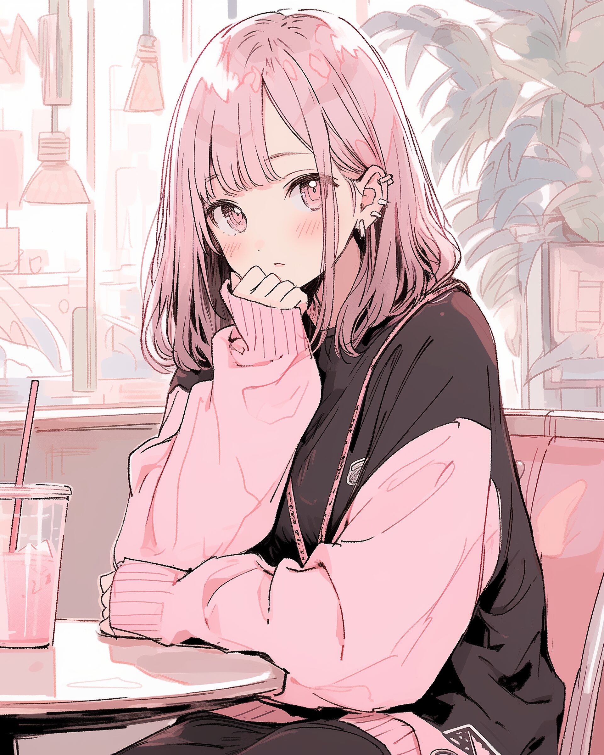 検索タグ:イラスト、ファッション、キャラクター、女性、女、女の子、女子、女の人、アニメ、漫画、マンガ、美人、美女、若い、かわいい、可愛い、カワイイ、人物、顔、美しい、綺麗、きれい、キレイ、アート、お洒落、挿絵、インスタ、Instagram、fashion、コピースペース、おしゃれ、オシャレ、秋、秋服、待ち合わせ、秋冬ファッション、パーカー女子、ピンク、PINK、1人、カフェ