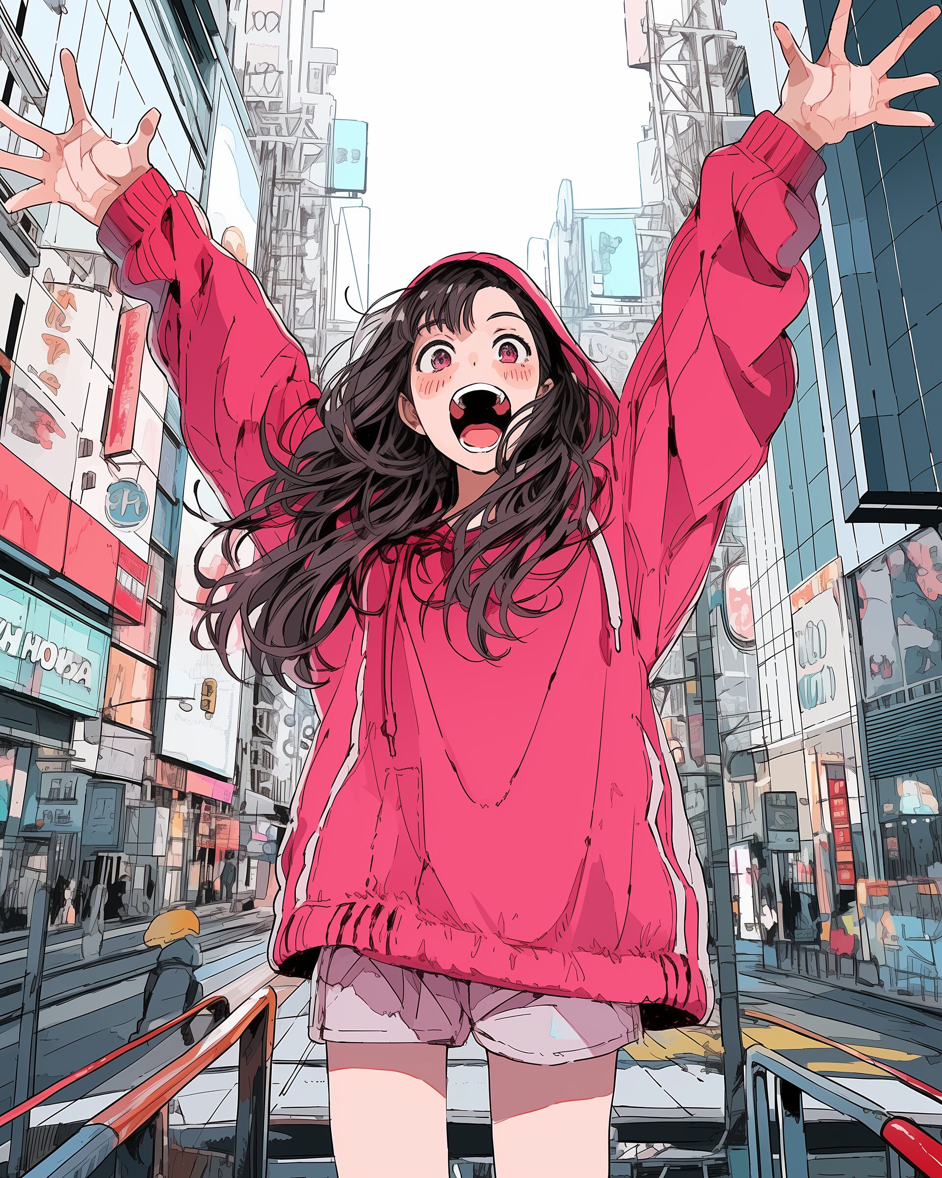 検索タグ:イラスト、ファッション、キャラクター、女性、女、女の子、女子、女の人、アニメ、漫画、マンガ、美人、美女、若い、かわいい、可愛い、カワイイ、人物、顔、美しい、綺麗、きれい、キレイ、アート、お洒落、女子高生、JK、挿絵、夏、春、パステルカラー、春服、インスタ、Instagram、summer、fashion、サムネイル、アイキャッチ、コピースペース、ピンク、pink、パーカー女子、喜ぶ、万歳、バンザイ、ばんざい