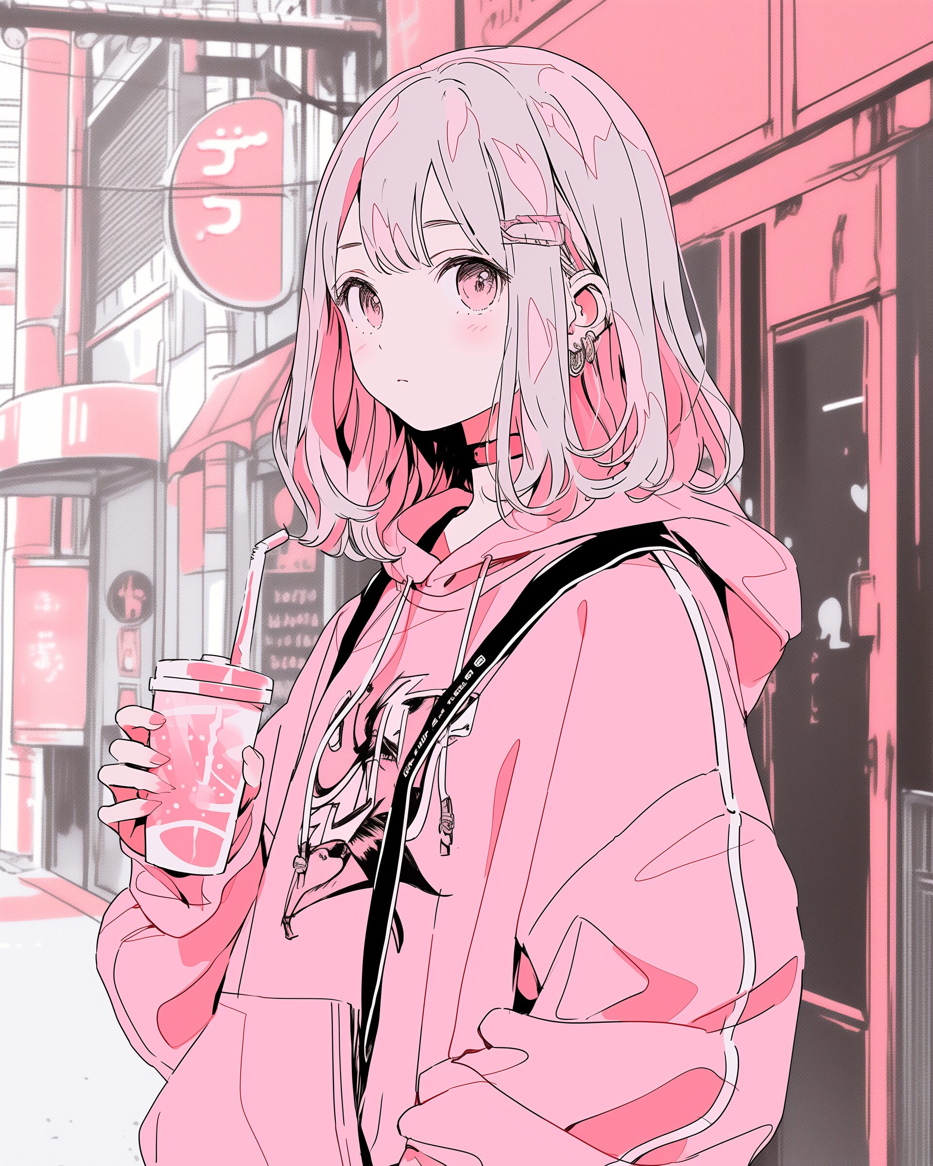 検索タグ:イラスト、ファッション、キャラクター、女性、女、女の子、女子、女の人、アニメ、漫画、マンガ、美人、美女、若い、かわいい、可愛い、カワイイ、萌え、萌え系、萌えキャラ、人物、顔、美しい、綺麗、きれい、キレイ、芸術、アート、顔、冬服、冬、洋服、お洒落、おしゃれ、オシャレ、コーデ、コーディネート、キュート、女子高生、JK、ジャケット、ピンク、スウェット