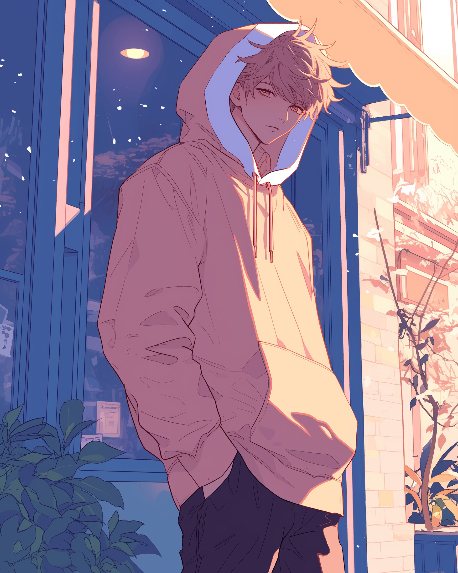 検索タグ:イラスト、ファッション、キャラクター、男性、男子、男の人、男の子、アニメ、漫画、マンガ、若い、かっこいい、カッコいい、カッコイイ、イケメン、メンズ、人物、顔、美しい、綺麗、きれい、キレイ、アート、お洒落、挿絵、インスタ、Instagram、AI生成画像、fashion、コピースペース、おしゃれ、オシャレ、秋、秋服、冬服、ピンク、パーカー