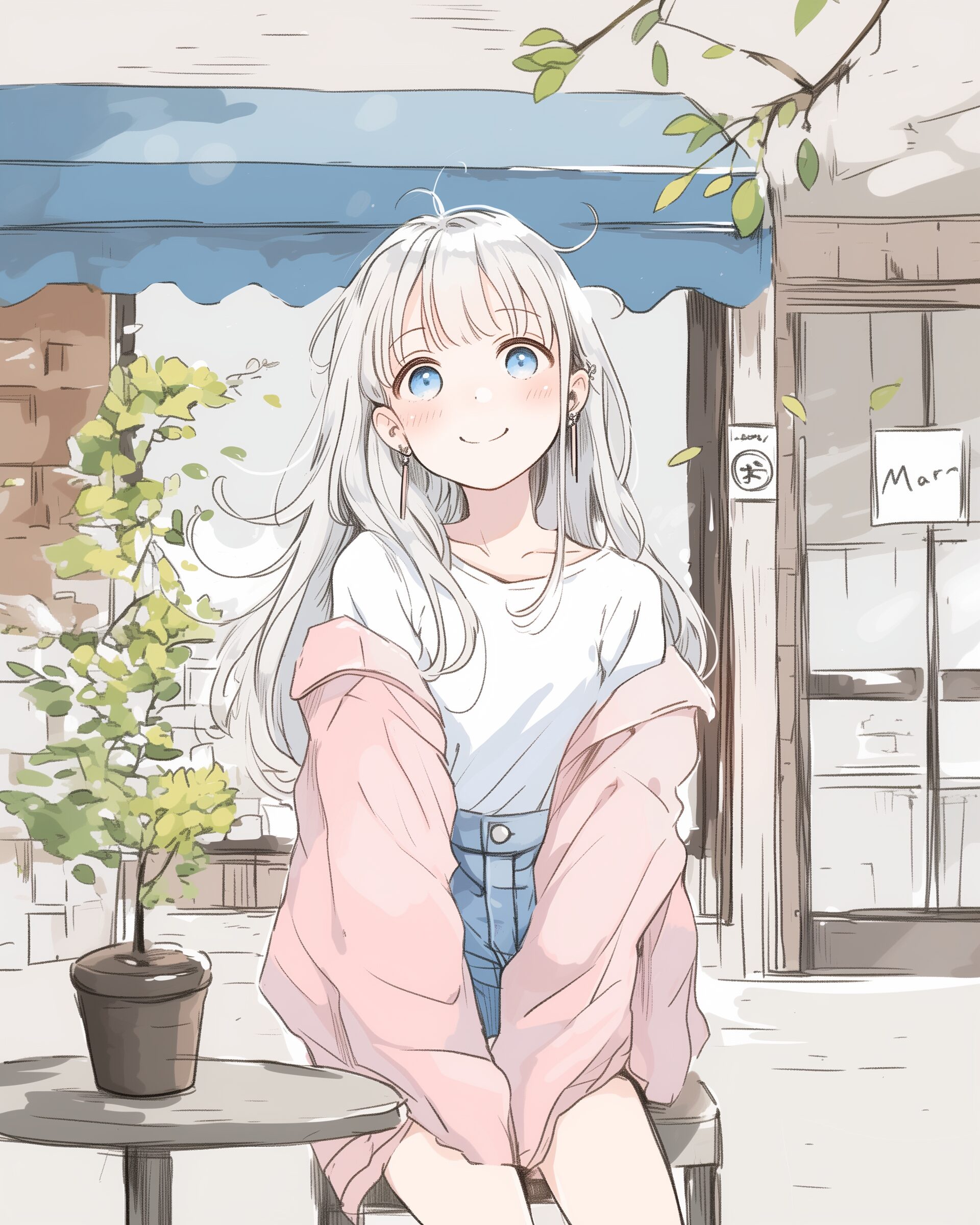 検索タグ:イラスト、ファッション、キャラクター、女性、女、女の子、女子、女の人、アニメ、漫画、マンガ、美人、美女、若い、かわいい、可愛い、カワイイ、人物、顔、美しい、綺麗、きれい、キレイ、アート、お洒落、挿絵、インスタ、Instagram、AI生成画像、fashion、コピースペース、銀髪、ピンクパーカー女子、驚き、驚く、ジャージ