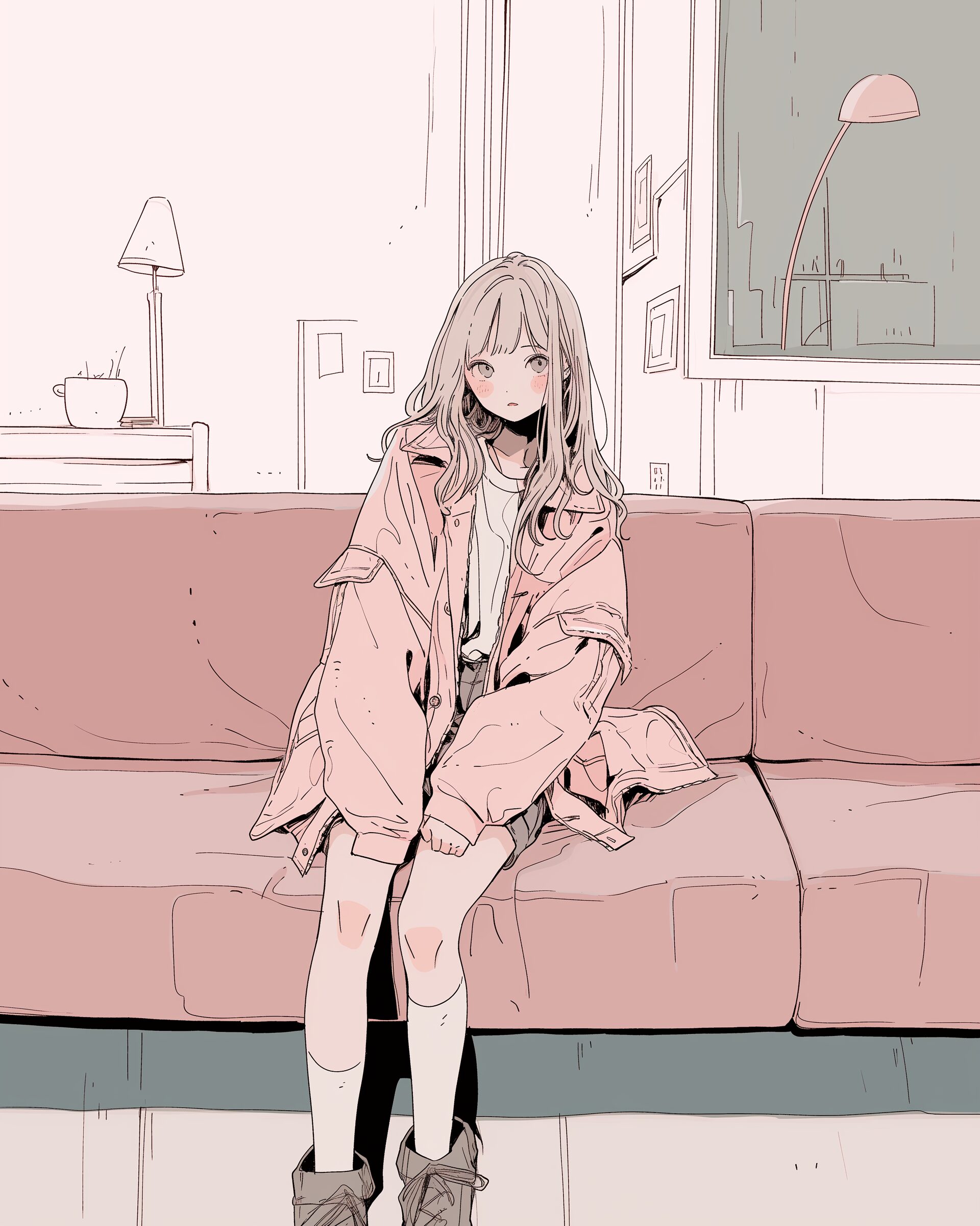 検索タグ:イラスト、ファッション、キャラクター、女性、女、女の子、女子、女の人、アニメ、漫画、マンガ、美人、美女、若い、かわいい、可愛い、カワイイ、人物、顔、美しい、綺麗、きれい、キレイ、アート、お洒落、女子高生、JK、挿絵、夏、春、パステルカラー、パーカー、パーカー女子、hoodie、ピンク、pink、座る