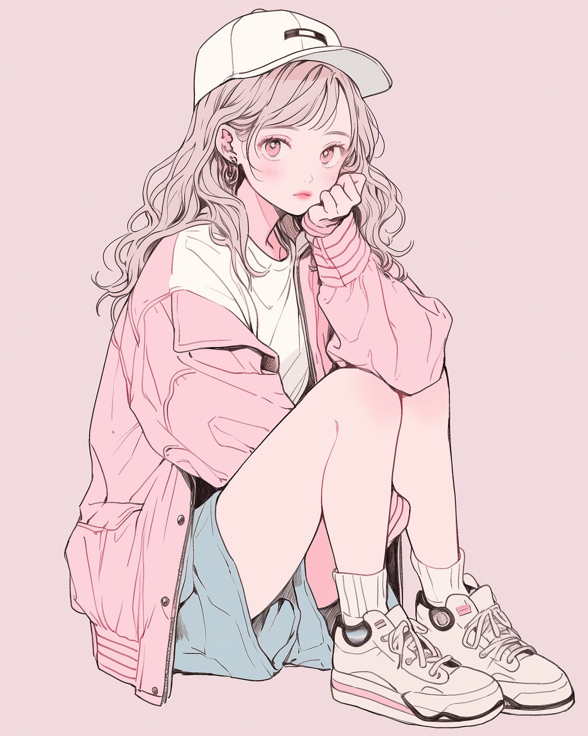 検索タグ:イラスト、ファッション、キャラクター、女性、女、女の子、女子、女の人、アニメ、漫画、マンガ、美人、美女、若い、かわいい、可愛い、カワイイ、人物、顔、美しい、綺麗、きれい、キレイ、アート、お洒落、女子高生、JK、挿絵、夏、春、パステルカラー、トップス、春服、ピンク