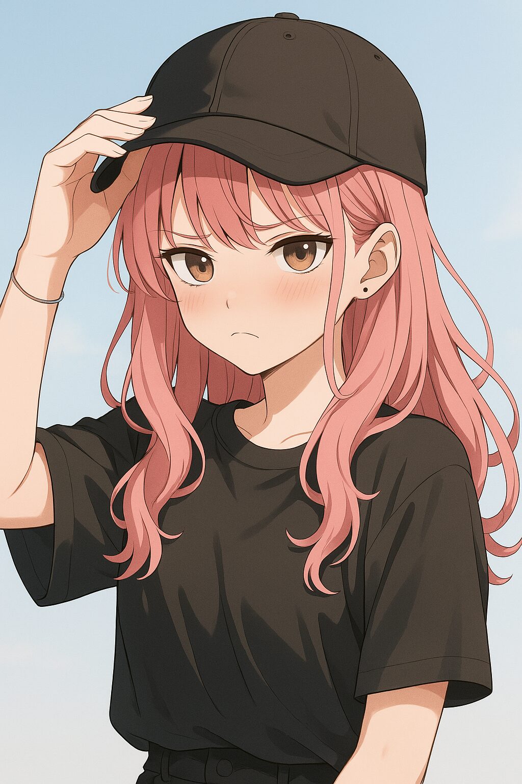 検索タグ:イラスト、ファッション、キャラクター、女性、女、女の子、女子、女の人、アニメ、漫画、マンガ、美人、美女、若い、かわいい、可愛い、カワイイ、人物、顔、美しい、綺麗、きれい、キレイ、アート、お洒落、挿絵、インスタ、Instagram、AI生成画像、fashion、コピースペース、ロングヘア、学生、高校生、中学生、ピンク、ピンク髪、おしゃれ、オシャレ、Rin Sakurai、櫻井 凛、さくらい りん、恋する彼はにゃんこ、髪色、カラー、オフショット、キャップ、帽子