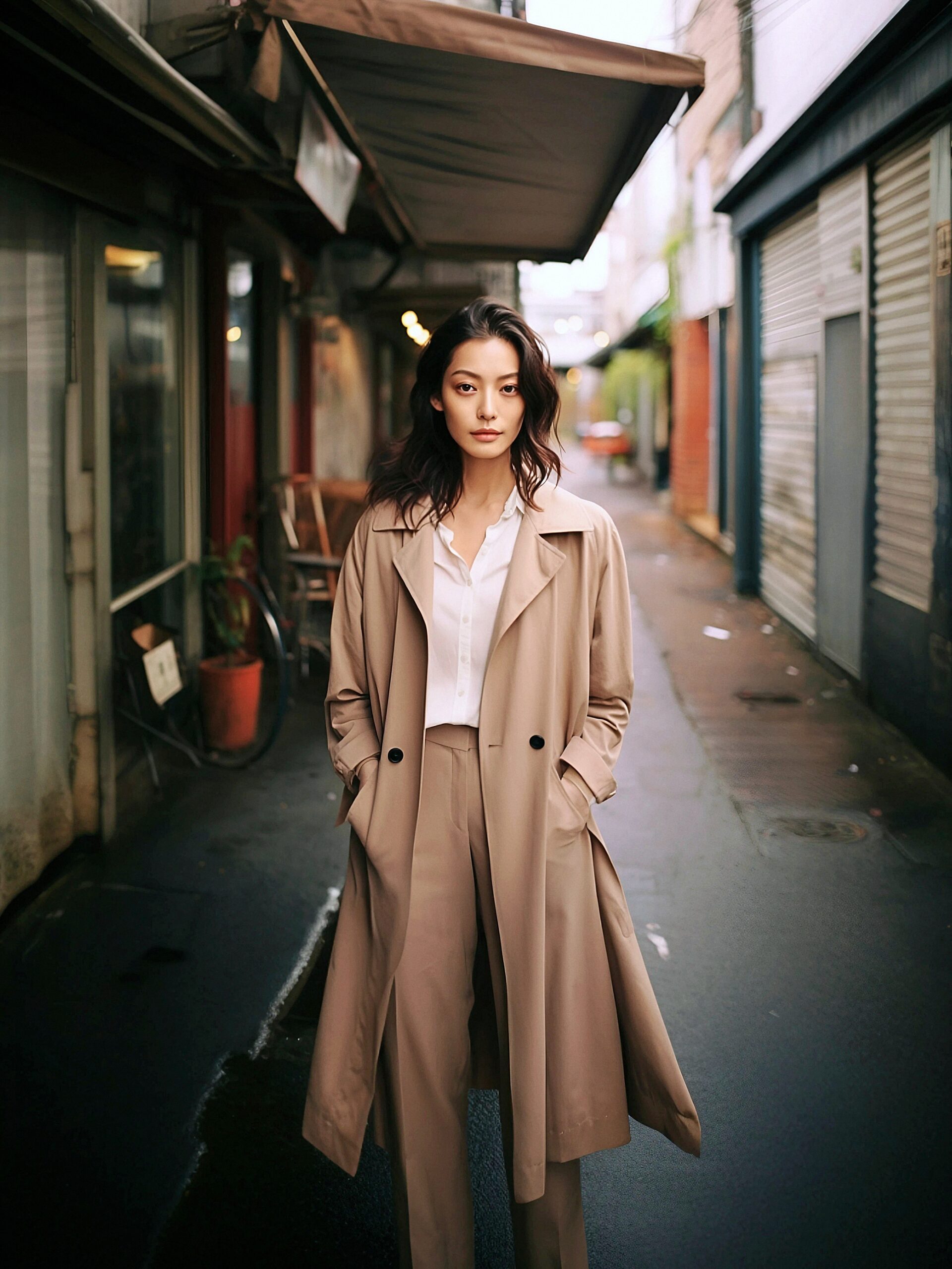 トレンチコートを着たお洒落ファッションの女性素材05