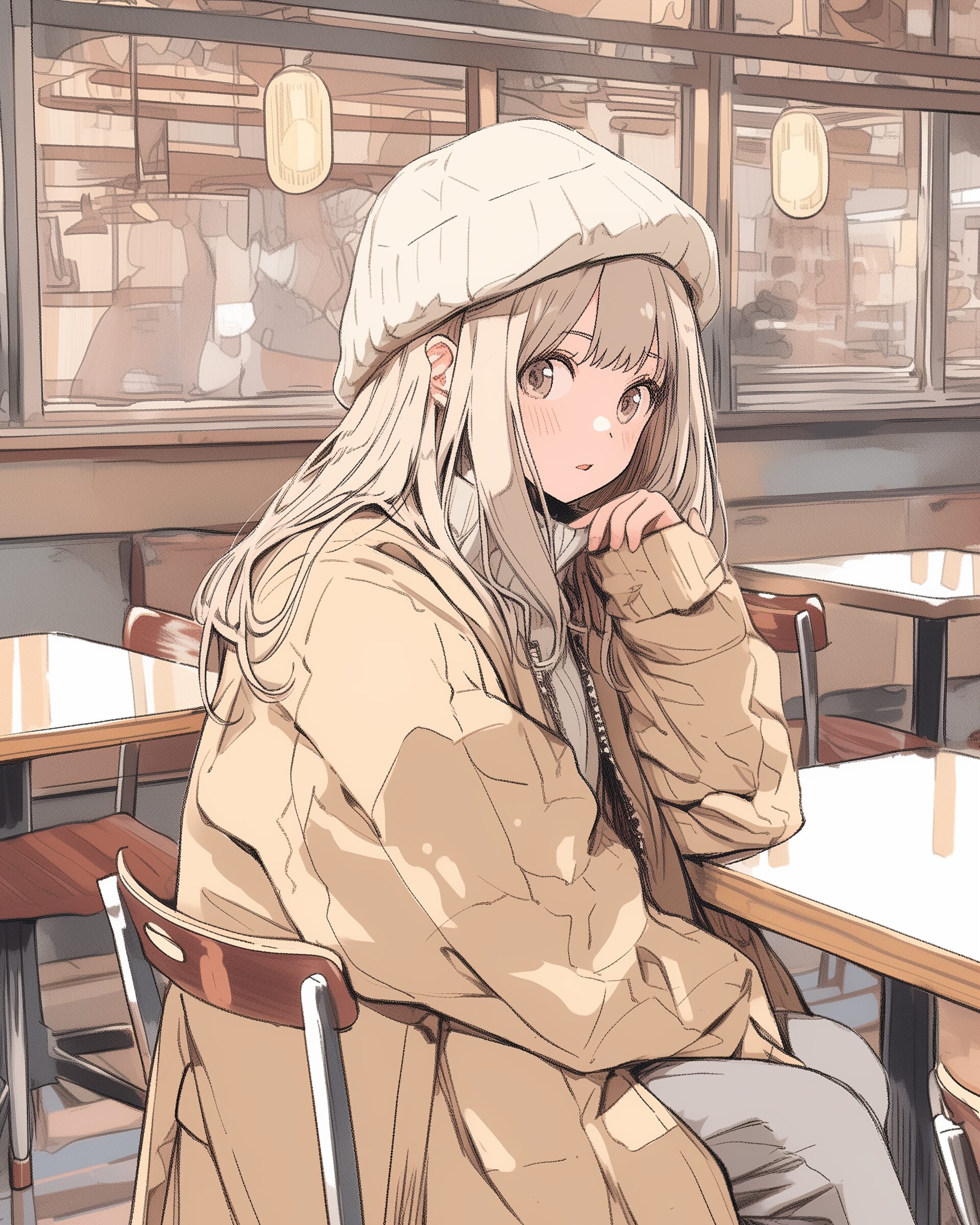 検索タグ:イラスト、ファッション、キャラクター、女性、女、女の子、女子、女の人、アニメ、漫画、マンガ、美人、美女、若い、かわいい、可愛い、カワイイ、人物、顔、美しい、綺麗、きれい、キレイ、アート、お洒落、挿絵、インスタ、Instagram、AI生成画像、fashion、コピースペース、おしゃれ、オシャレ、秋、秋服、冬服、パーカー女子、ブラウン、ベージュ