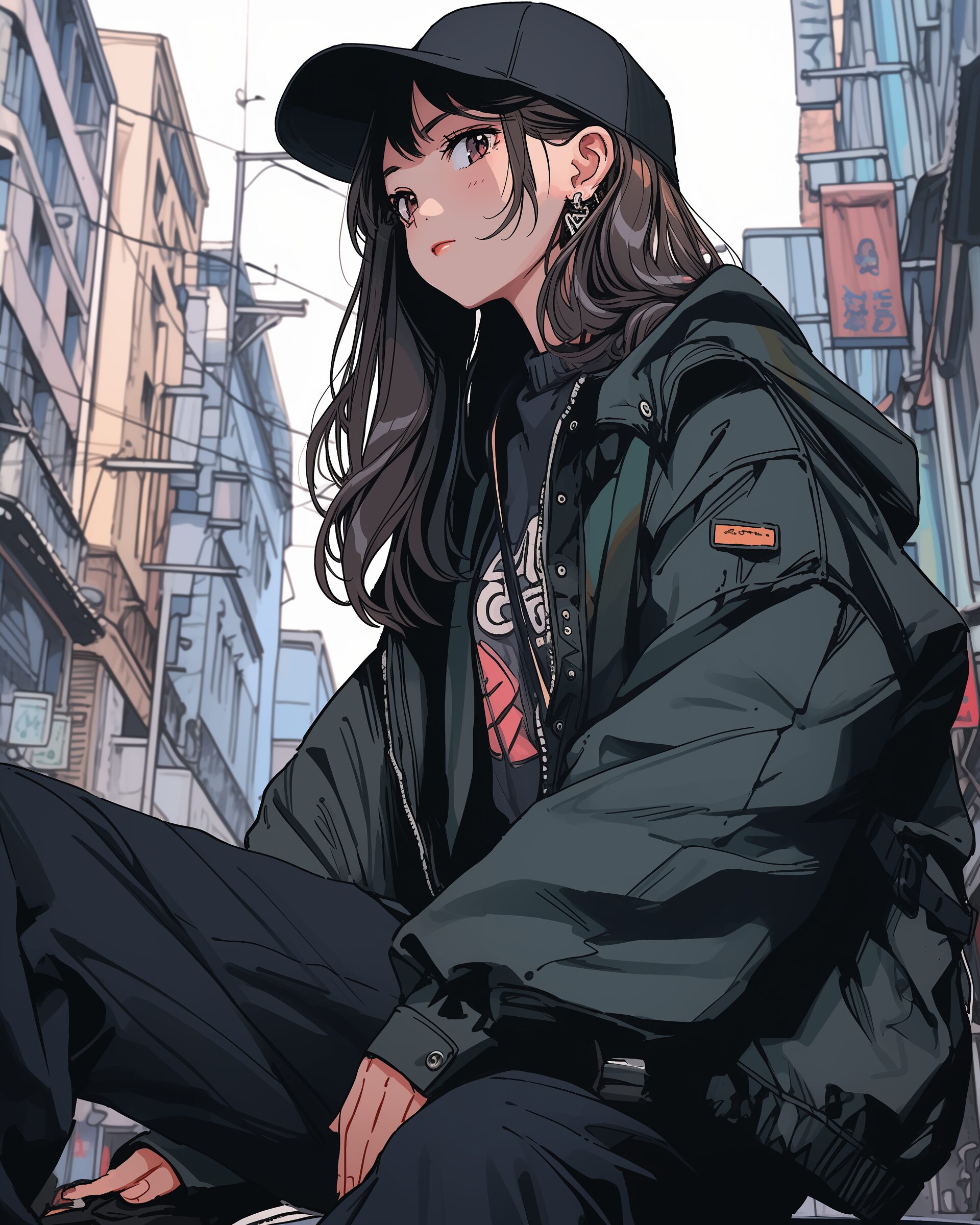 検索タグ:イラスト、ファッション、キャラクター、女性、女、女の子、女子、女の人、アニメ、漫画、マンガ、美人、美女、若い、かわいい、可愛い、カワイイ、萌え、AI生成画像、萌え系、萌えキャラ、人物、顔、美しい、綺麗、きれい、キレイ、芸術、アート、顔、冬服、冬、洋服、お洒落、おしゃれ、オシャレ、コーデ、コーディネート、パーカー、パーカー女子、キュート、待ち合わせ、女子高生、JK、ブラック