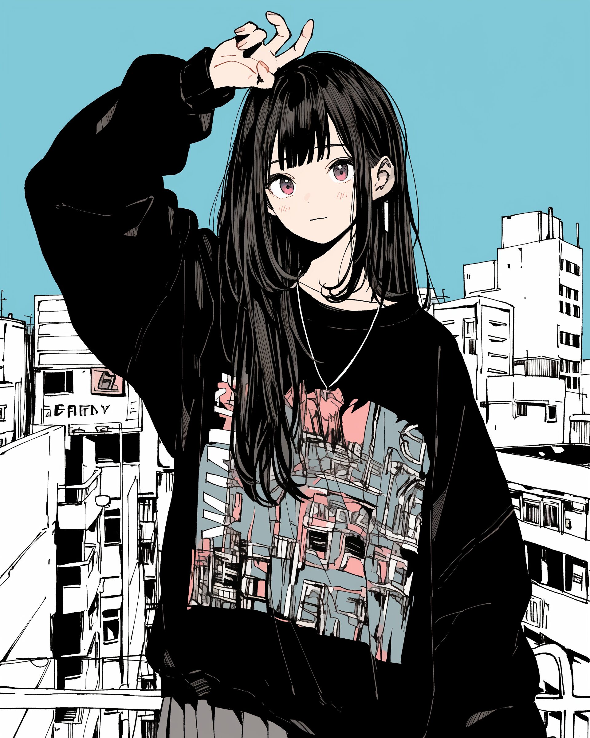 検索タグ:イラスト、ファッション、キャラクター、女性、女、女の子、女子、女の人、アニメ、漫画、マンガ、美人、美女、若い、かわいい、可愛い、カワイイ、萌え、萌え系、萌えキャラ、人物、顔、美しい、綺麗、きれい、キレイ、芸術、アート、顔、冬服、冬、洋服、お洒落、おしゃれ、オシャレ、コーデ、コーディネート、キュート、女子高生、JK、ジャケット、ブラック、黒、スウェット