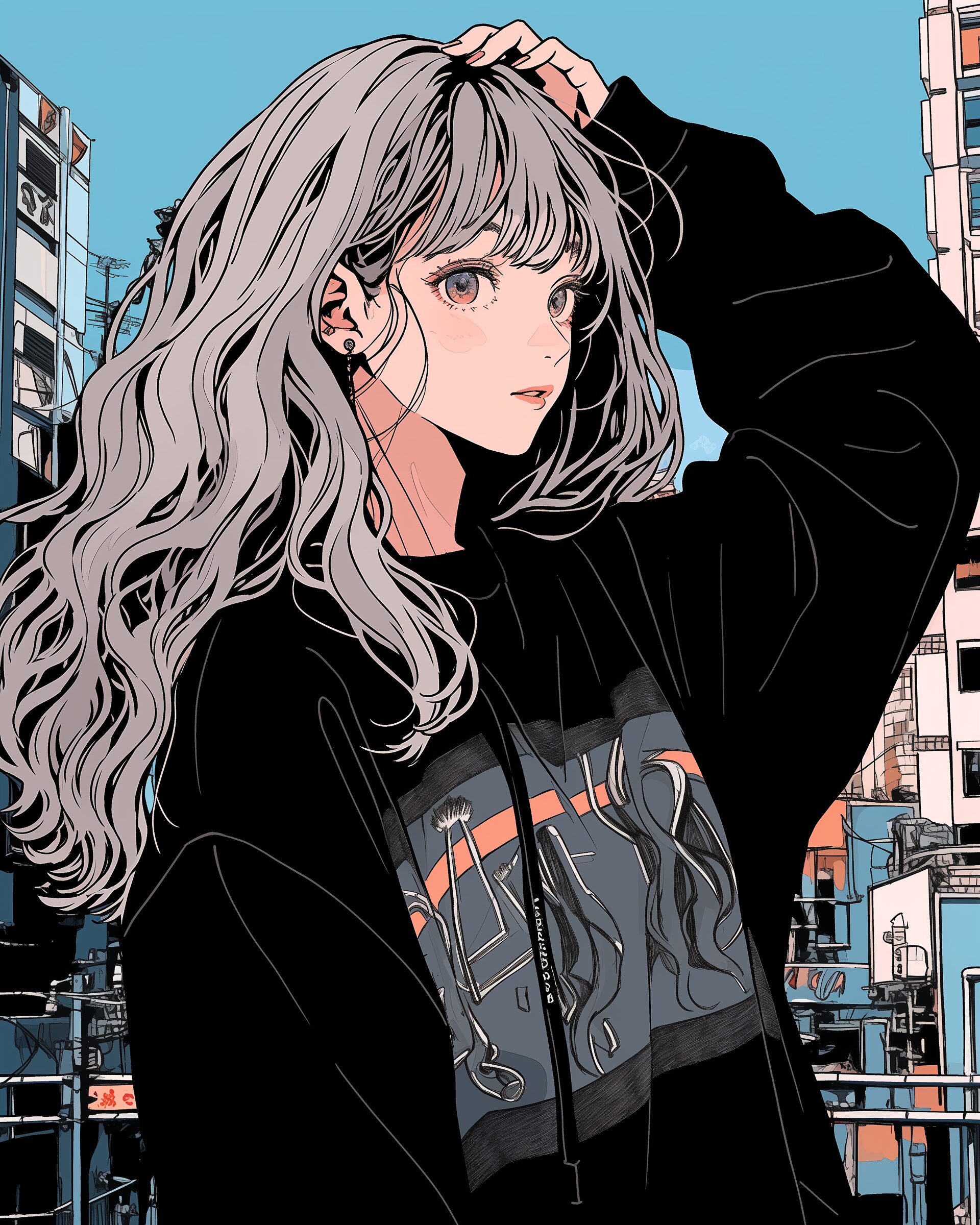 検索タグ:イラスト、ファッション、キャラクター、女性、女、女の子、女子、女の人、アニメ、漫画、マンガ、美人、美女、若い、かわいい、可愛い、カワイイ、萌え、萌え系、萌えキャラ、人物、顔、美しい、綺麗、きれい、キレイ、芸術、アート、顔、冬服、冬、洋服、お洒落、おしゃれ、オシャレ、コーデ、コーディネート、キュート、女子高生、JK、ジャケット、ブラック、黒、スウェット